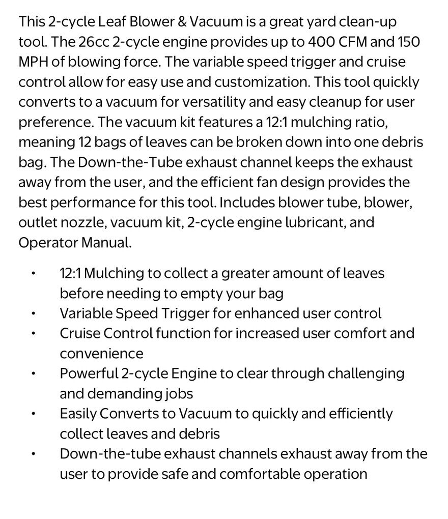 VenmoNew Hyper Tough 150 mph at 400 CFM 26cc 2-Cycle Engine Gas Leaf Blower & Vacuum. New in the box still!