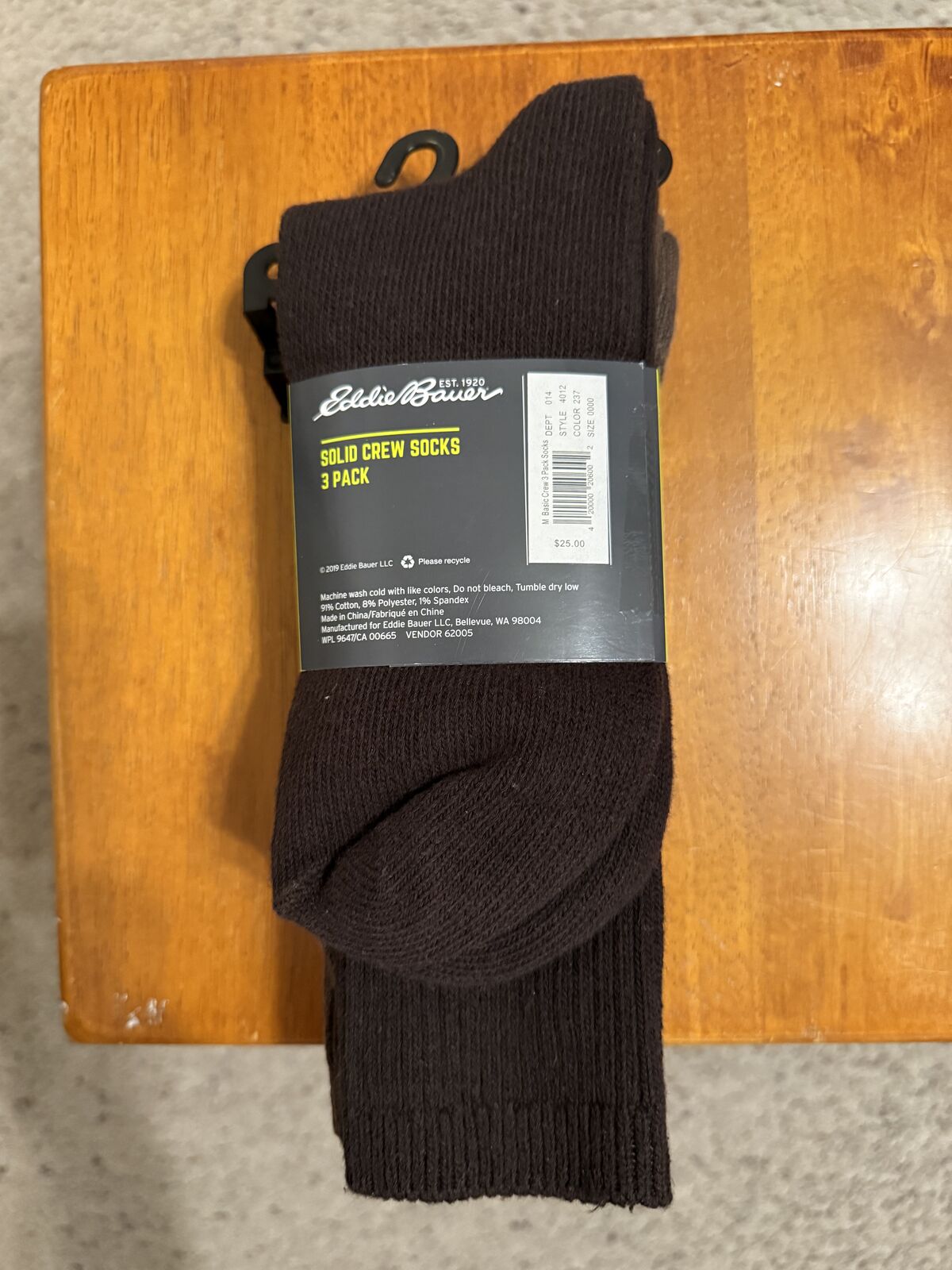 I bought these Brand New Eddie Bauer Solid Crew Socks 3-pk online for $25 (see 2nd photo), but ended up never using them. Still Brand New with Tags. Selling them for only $6. Please call/text if interested. 801-541-7189.
