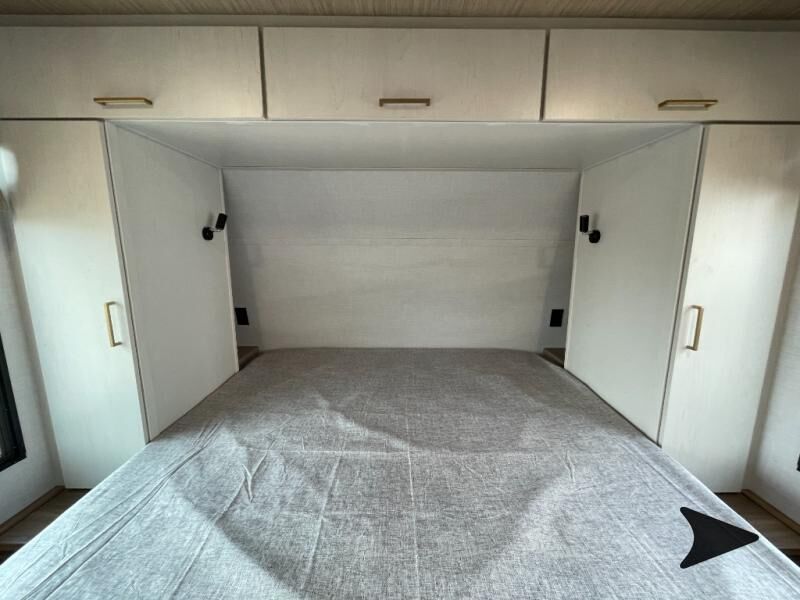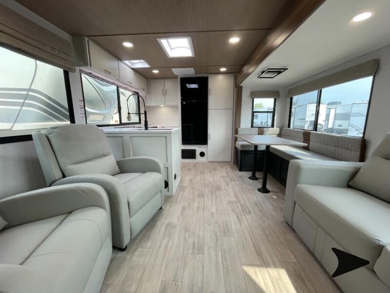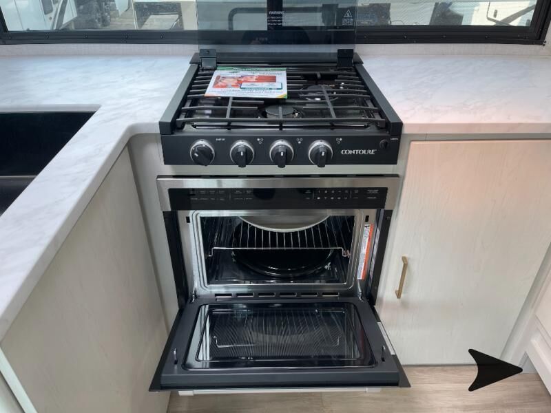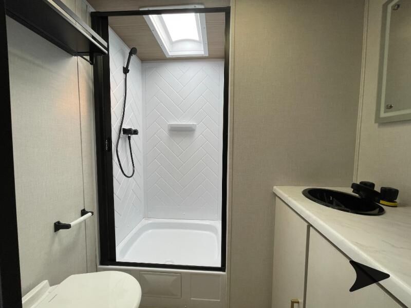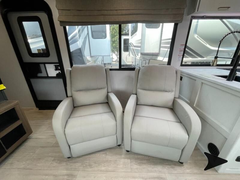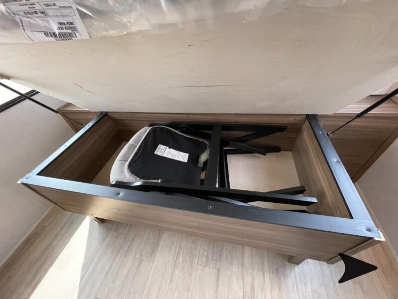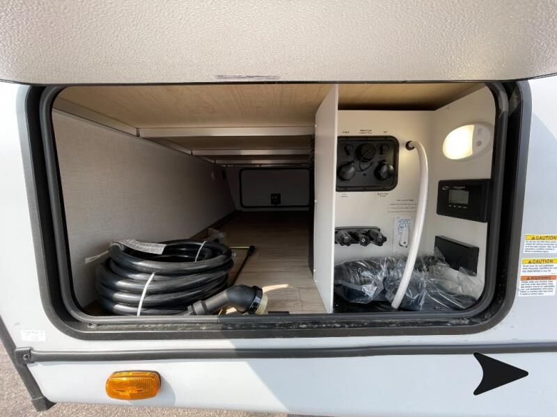 Forest River Vibe travel trailer 2600RK highlights: Rear Kitchen Two Recliners Private Bedroom Panoramic Windows Escape to the great outdoors in this Vibe travel trailer. Once you arrive at your campsite, set up the 20' electric awning with LED lights, then grab the fishing poles from the large pass-through storage. You can make lunch on the electric oven/air fryer, and your food can be stored in the 12V refrigerator. The spacious full bath includes a 36" x 30" walk-in shower to clean up every day, and there is a linen closet to store clean towels and necessities. With any Vibe travel trailer by Forest River, you will enjoy comfort at every turn! There is a Norco huck-bolted steel frame, an enclosed underbelly with 12V heating pads, and a PVC roof membrane for added durability. You will also find a universal docking station outside, along with slam latch doors, European style square windows, and an automotive painted front cap. Head inside to enjoy the premium residential-style furniture, decorative window treatments, privacy shades in the living room and bedroom, and many more comforts!