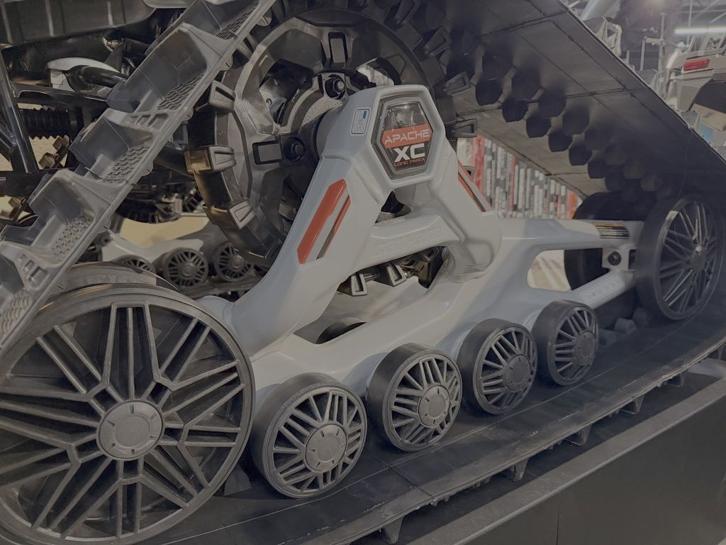 Apache XC Long Track System: Engineered for superior flotation and traction. With this $8,225 upgrade, you gain an increased footprint that allows you to ride where tires simply sink.