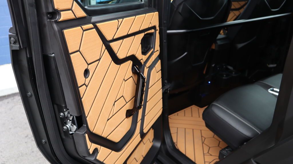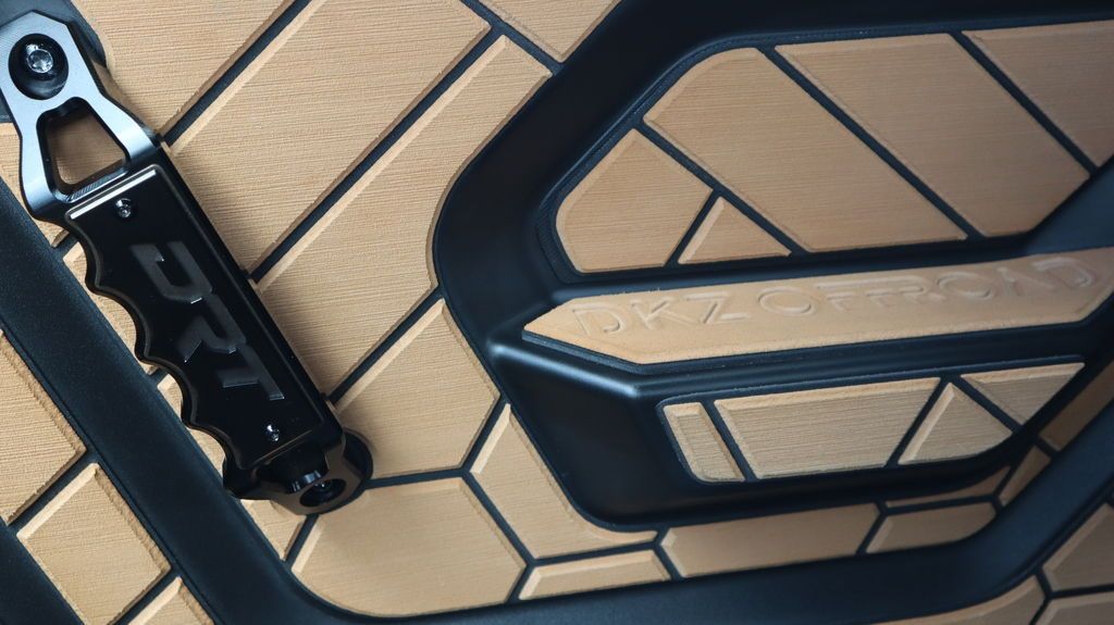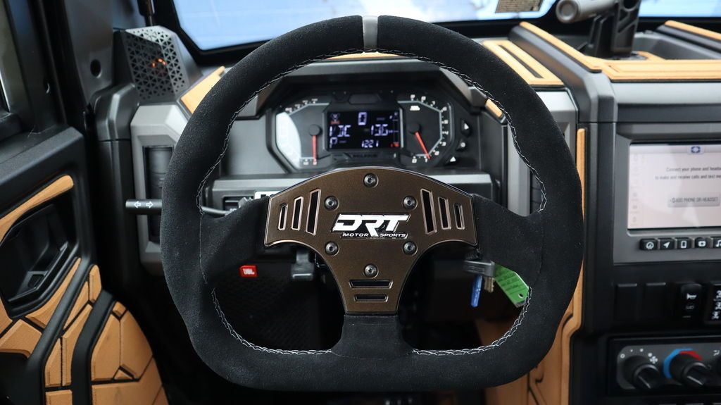 DKZ boat foam interior delivers a refined, high-comfort feel, complemented by Chupacabra mirrors, a Viper shifter, and a DRT quick-release steering wheel that can be removed, plus DRT door grips for a premium, performance-focused cockpit.