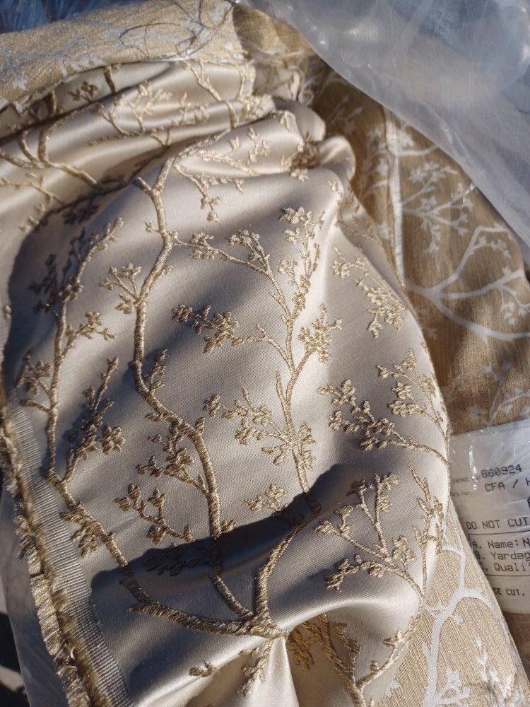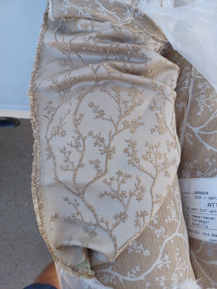 This fabrc is 54" wide. This listing is for both rolls pictures. One roll is 8 yard and the sescond roll is 30.5 yards. The best price I can find online is $65 per yard. Any questions please message me.