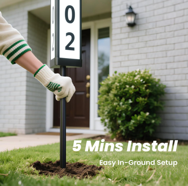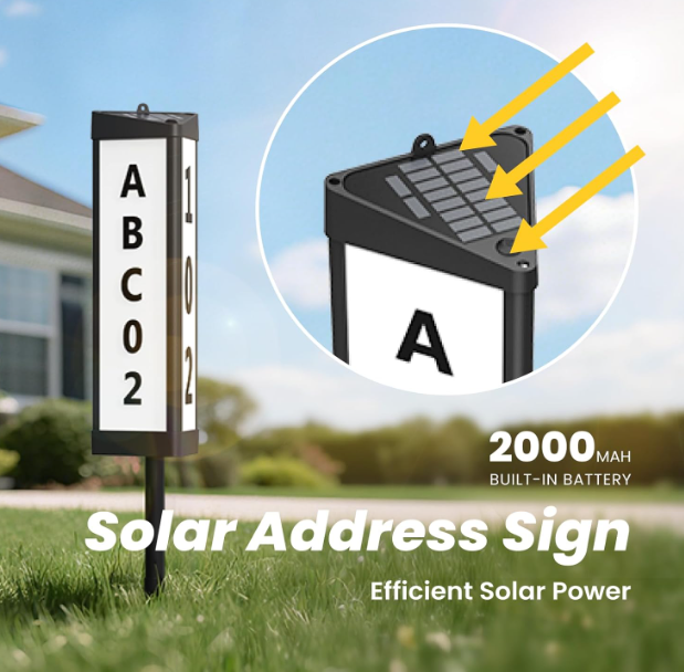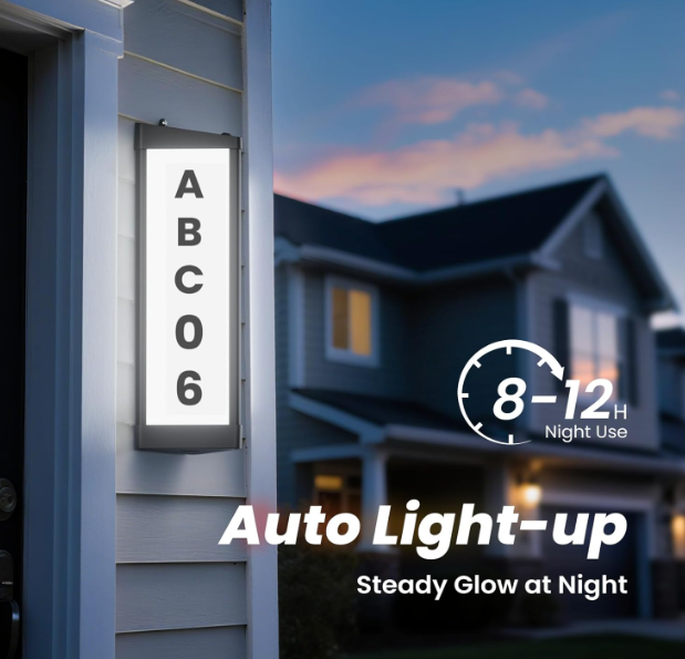 ZelleEfficient Solar Charging & Long-Lasting Battery: Equipped with a high-efficient solar panel and 2000mAh battery, this solar address sign delivers over 8 hours of nightly glow after full charging. Ideal for outdoor use, it ensures address numbers stay illuminated reliably, saving energy while keeping your house number sign bright all night.
