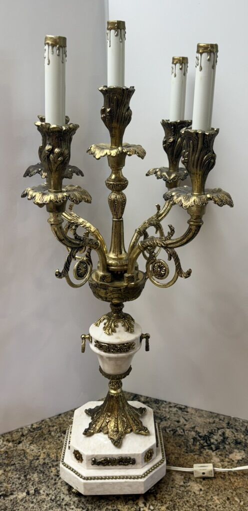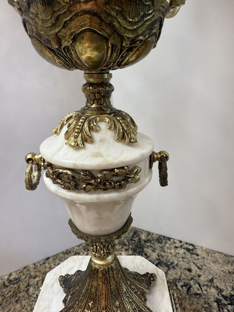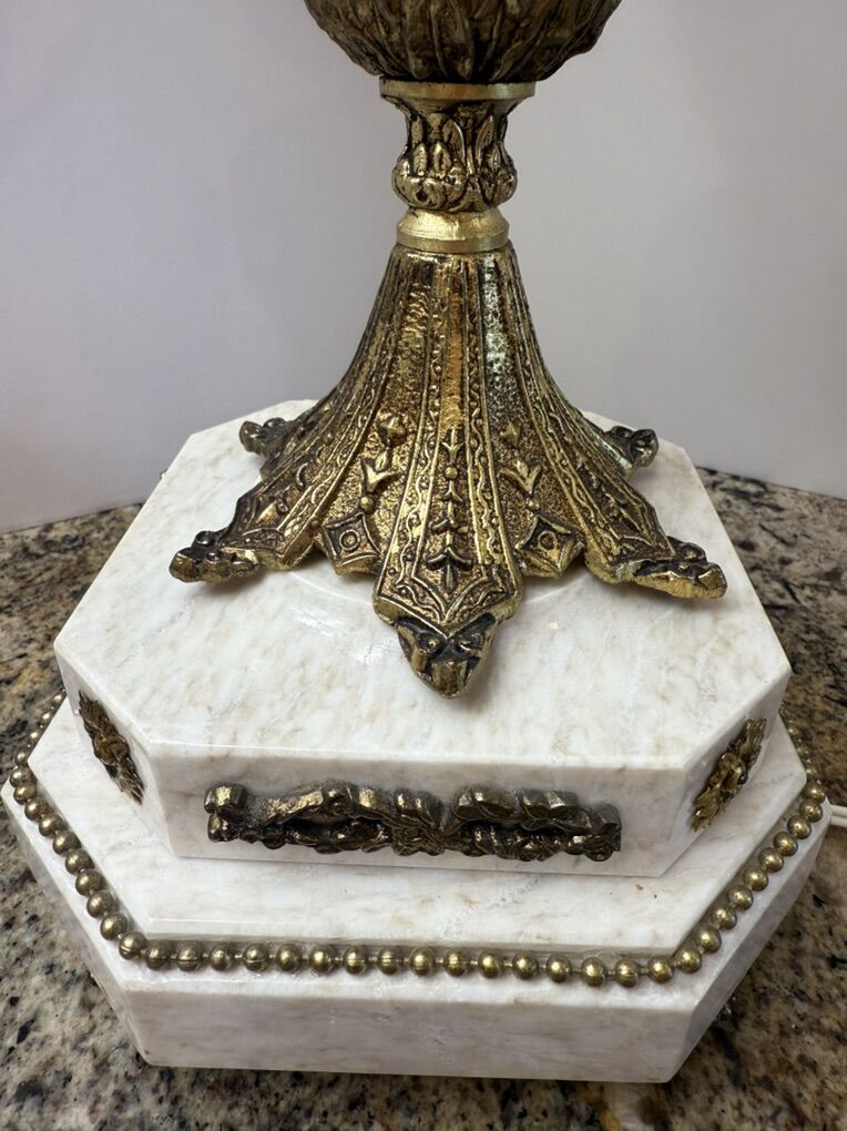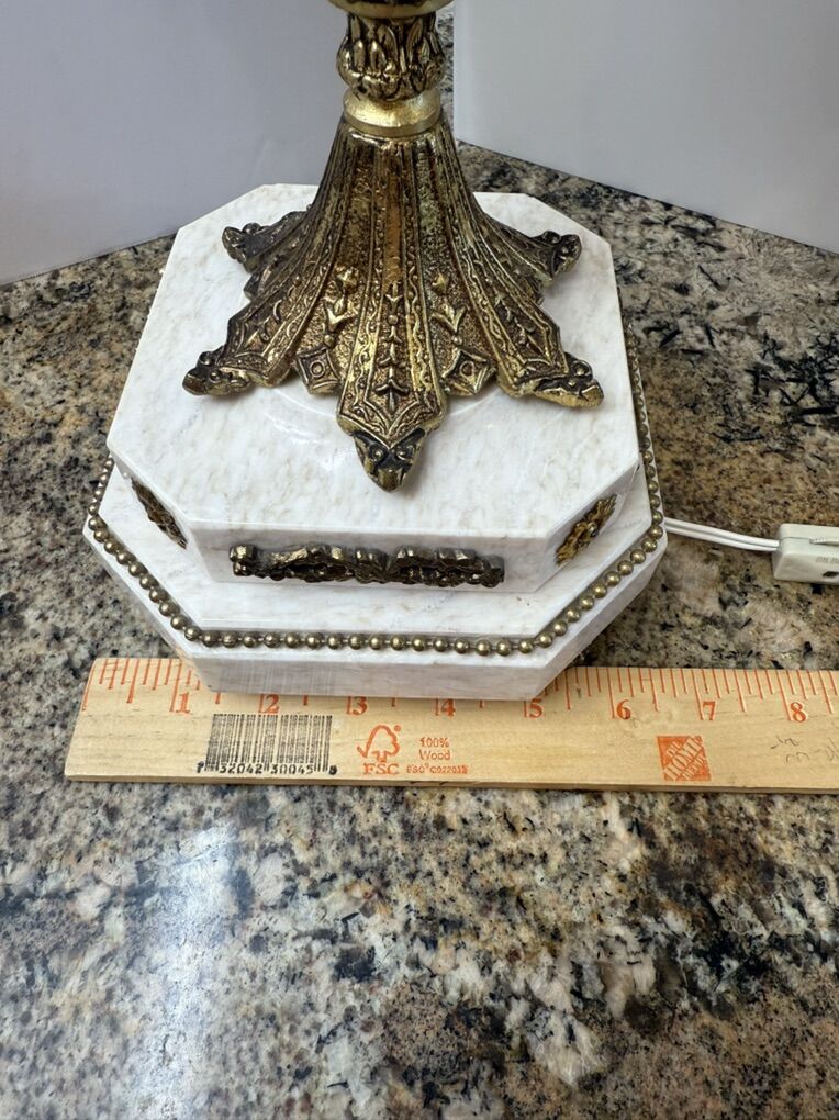 VenmoThis is a beautiful, gilded gold metal and marble lamp. It is very heavy and so exquisite. Measurements are in the photos. Feel free to view in person without feeling obligated to buy. Tap on “from the seller” to see my other listings.
