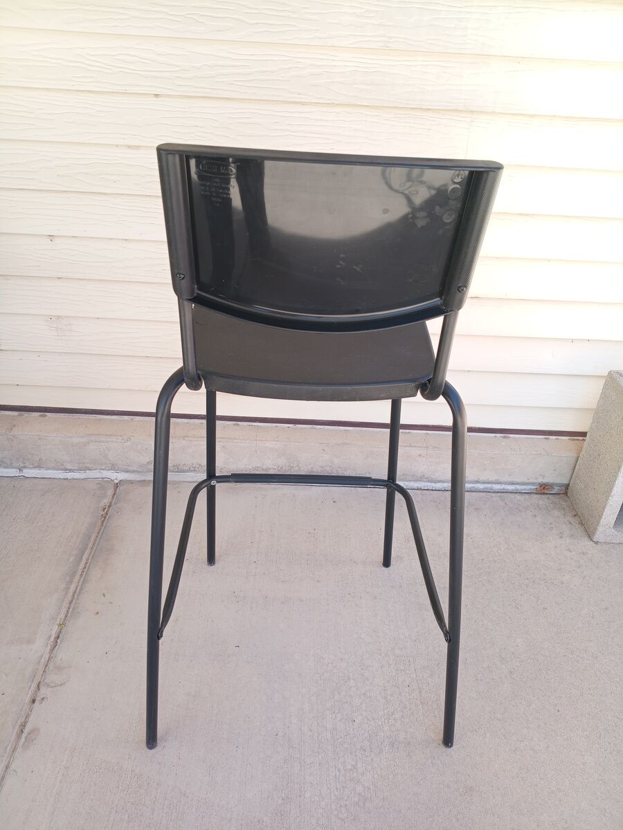 The seat measures 29 inches in height. Hard plastic, with back rest and foot rest.
