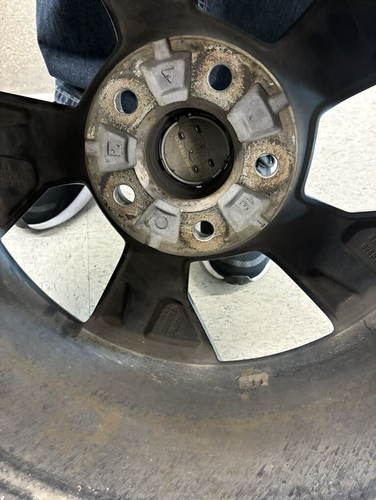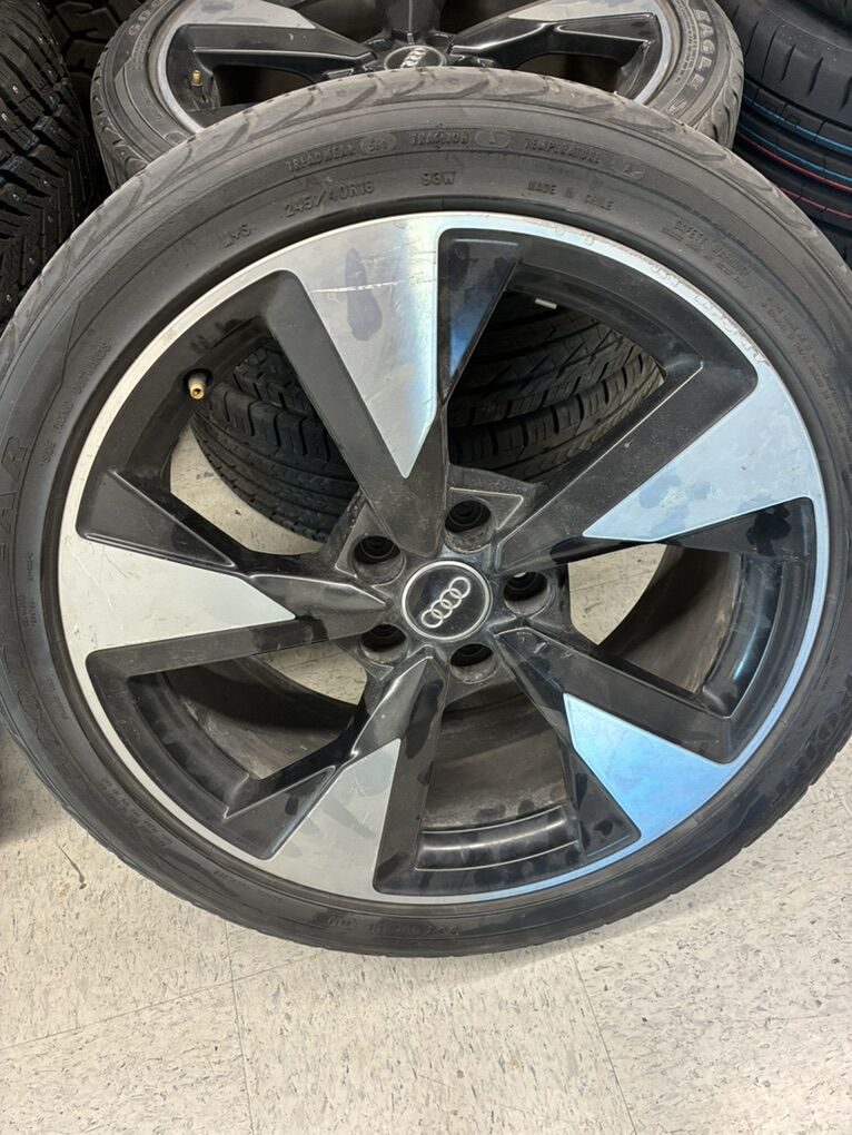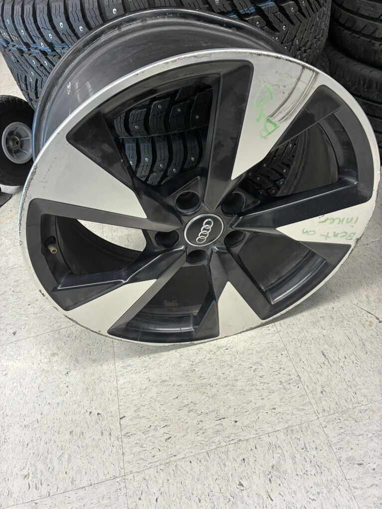 Set of 4 wheels from an Audi A4 S. I believe they were removed from a 2017 model year. One wheel is slightly bent (pictured) and will need repaired/replaced. Located at Limited Auto Group in Twin Falls, Idaho. Message to coordinate pickup time and/or ask for Graham upon arrival.