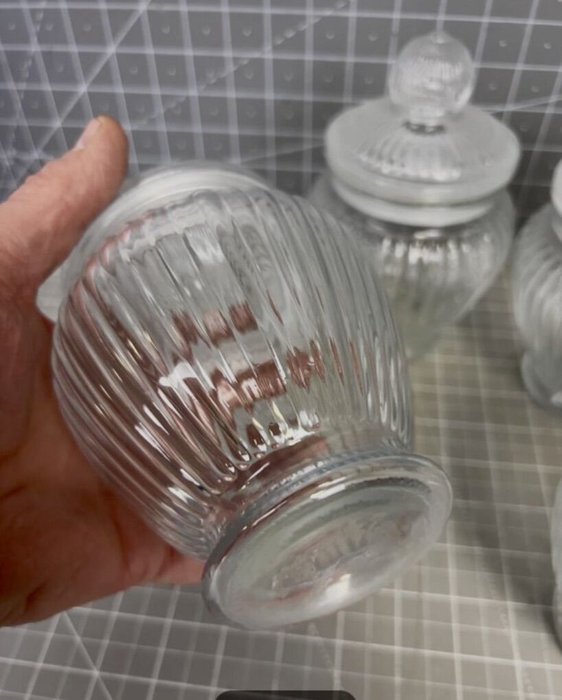 VenmoSelling in sets of 2 or all 6. Set of 2 for $15 or Set of 6 for $40 These are beautiful ribbed clear glass apothecary jars. They have vertical ribbing with a lid with a knob finial. They are shapely and so adorable. Perfect for a bathroom vanity, filled with cotton balls, as a decorative jar on your entry table, or put to work in your kitchen. Possibly vintage jars but not 100%. They measure 8 inches tall x about 5 inches wide. They’re in excellent condition. No chips, cracks, or damage. They have an airtight seal. Please see the photos for specifics on the condition of these adorable apothecary jars. $20 per set of 2 or all 6 jars for $50