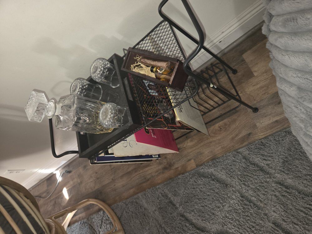 this is a beautiful vintage record holder/ storage table that will have you ready for a chill vibes night and some great tunes.