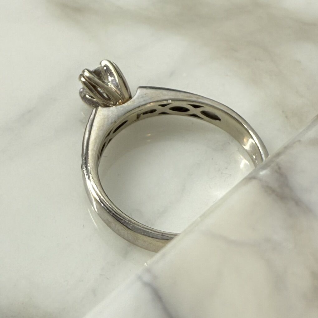 Approx size ring size 5.5 Center Diamond VS clarity H color 1/3ct total weight (6 small diamonds on each side of center stone) Total ring weight 3.4 gr