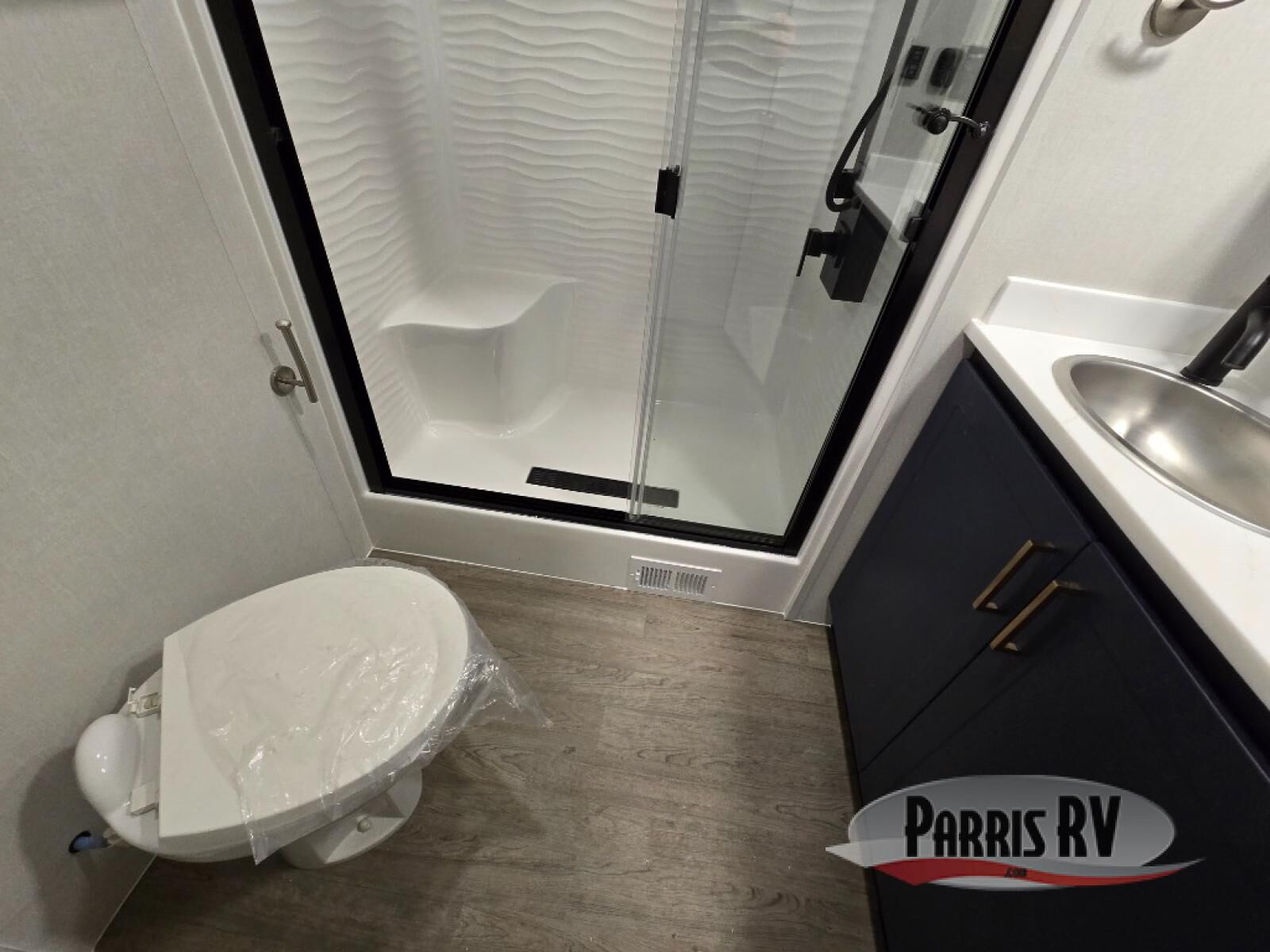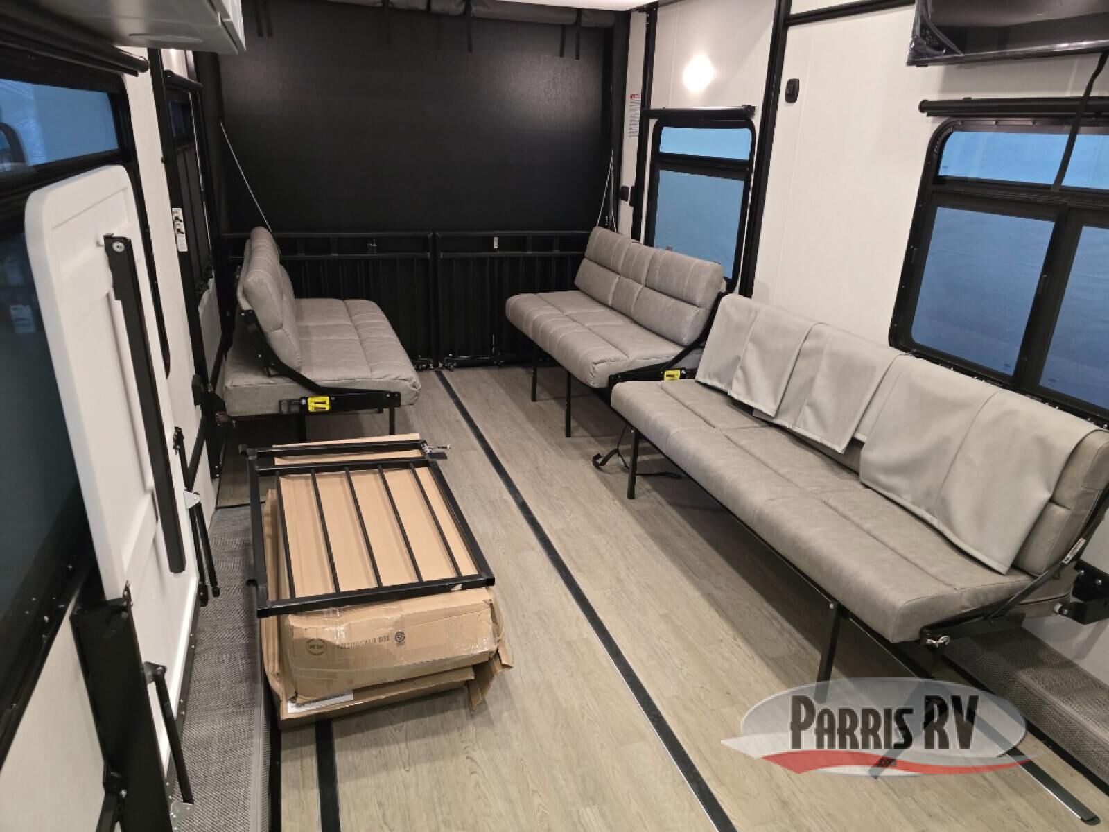 Start a new adventure in this spacious toy hauler that can sleep 2-10 depending on the options you choose to add! Once your toys are unloaded using the cableless rear ramp door, you can head out on a trail or two. You'll find a residential queen bed with storage in the front bedroom, along with storage space for your things and TV prep if you want to add a television. The full bath includes a spa/jet shower fixture that is sure to be nice after a day of riding the trails, and there is a glass shower door for added luxury. Head to the kitchen where you can whip up a meal for your crew on the LP three burner cooktop or in the convection microwave, and you can dine at the dinette with four chairs. If you'd like to get some fresh air, take your plate outdoors to sit under the power awning with a light strip!