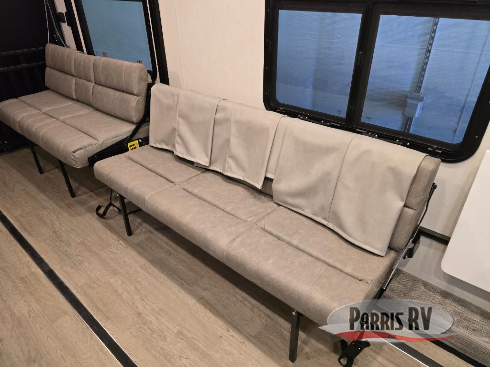 With any PLA 750 toy hauler fifth wheel by ATC Trailers, you will find a durable unit made to last thanks to the 6-sided welded aluminum frame, enclosed underbelly, composite ramp door, and more! The LifeTrac modular component system lets you configure your garage how you need it, and there are also tie-downs with three rows of Airline tracks with covers and an exterior pass-through storage for all the riding gear! Inside, you'll enjoy aluminum cabinets with solid surface countertops in the kitchen and bath, dimmable can ceiling lights, composite with commercial-grade vinyl flooring, and a porcelain toilet to name a few stand-out features. You can further customize your toy hauler by adding one or more of the available options, such as a deck package, 36 gallon fuel station, happijac sofa sleepers, an exterior shower, and more!