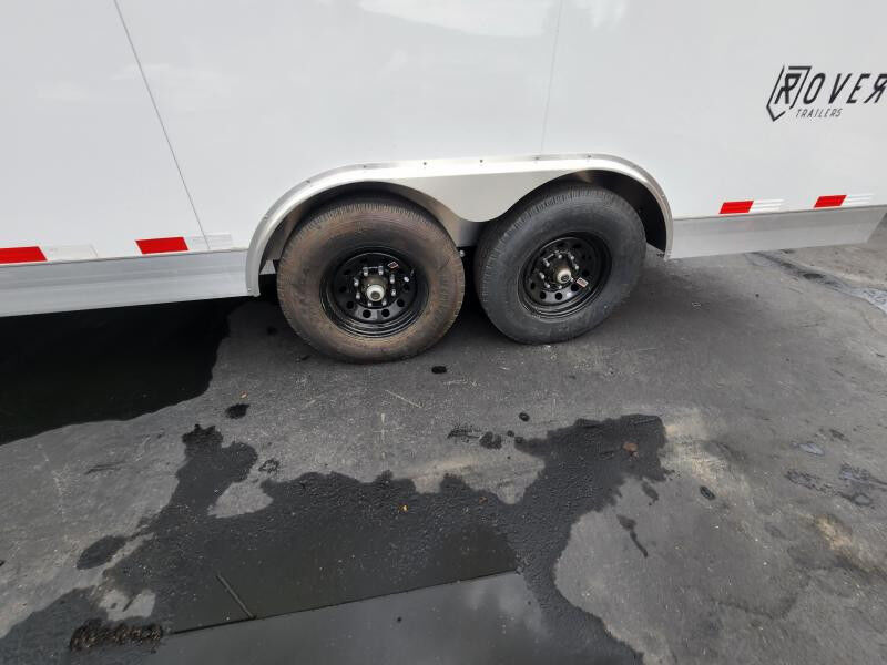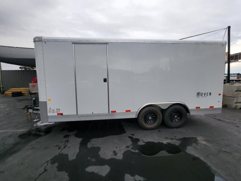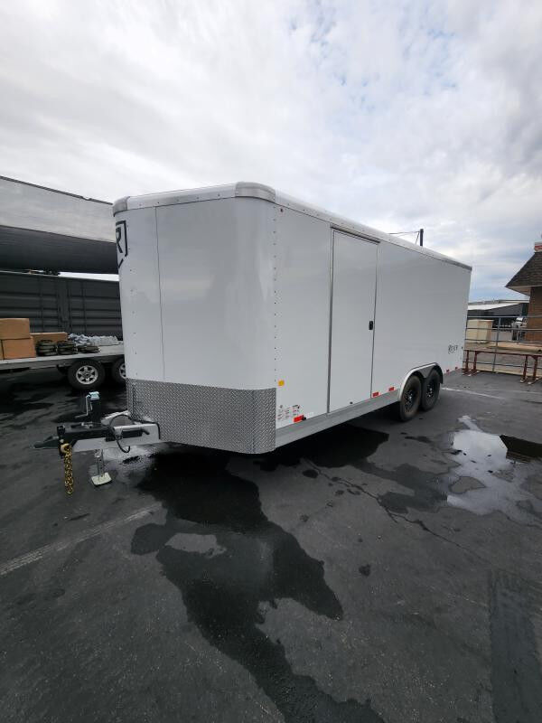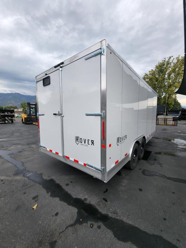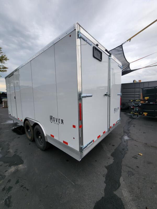 SPECS WIDTH: 8.5' LENGTH: 18' DOOR(S)/RAMP(S): Double Doors WEIGHT: 3895 lb GVWR: 12000 lb PAYLOAD: 8105 lb AXLE(S): Tandem Axle COUPLER: 2 5/16"\
