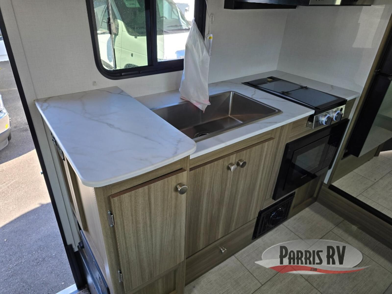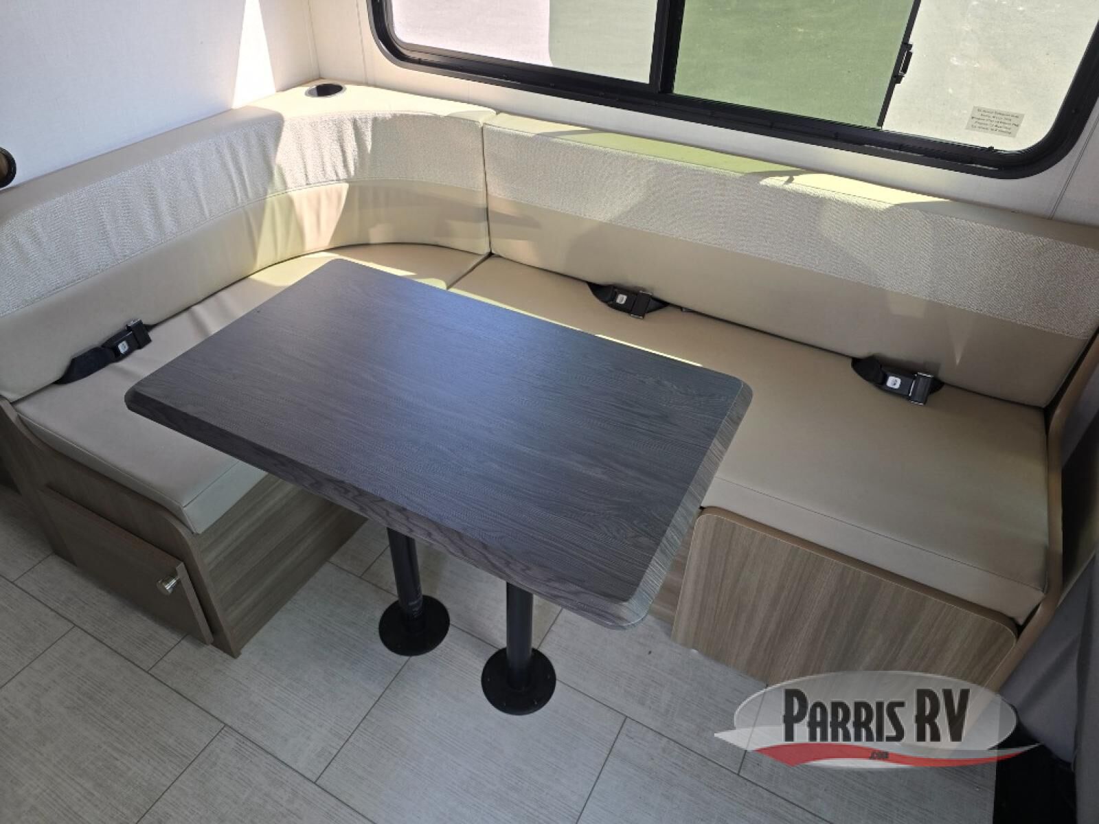 You will be met with comfort at every turn in this coach for six! Once you have stopped for the day, you can make lunch on the three burner cooktop and grab a cold drink from the 10 cu. ft. 12V refrigerator. There is a J-lounge with a pedestal table and extension where you can dine together, and the swing-arm TV in the cab will let you check the weather before heading outdoors. The rear corner full bath will let everyone freshen up when you return from hiking, and you'll enjoy a queen bed slide out to sleep on each night, while your guest take the J-lounge and cab-over bunk!
