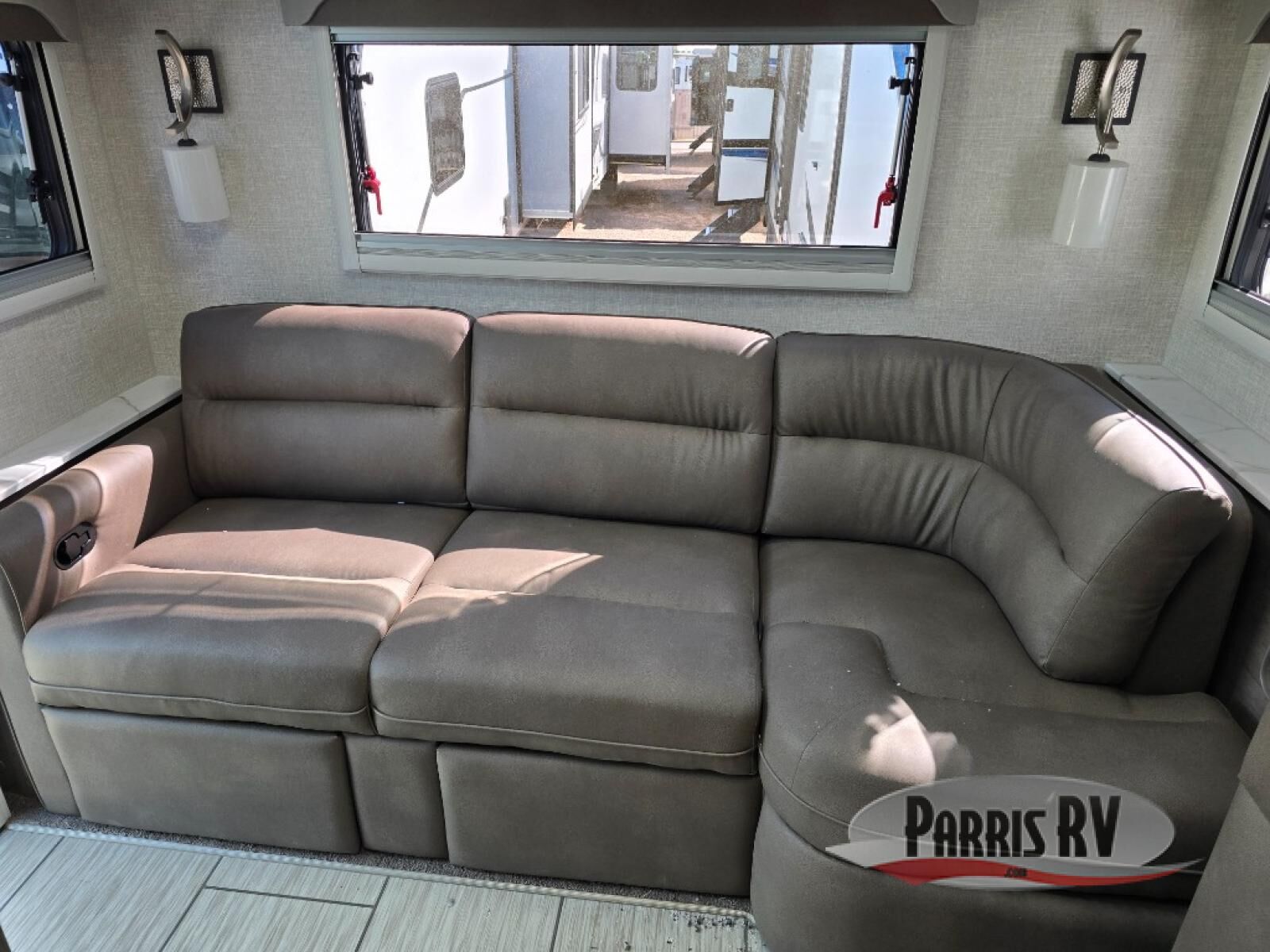 You can take this Lance travel trailer to any vacation you have planned, whether that is a lakeside retreat or a mountainous base camp. The front queen bed is a part of a semi-private bedroom when you shut the privacy divider door. The two swivel rockers provide you a place to enjoy your coffee at each morning. The booth dinette will serve as an excellent dining location, and it can also provide a bed for another camper if you reposition it. A full bathroom with a dual-pane skylight is essential because it allows you to camp wherever you want without needing public facilities.