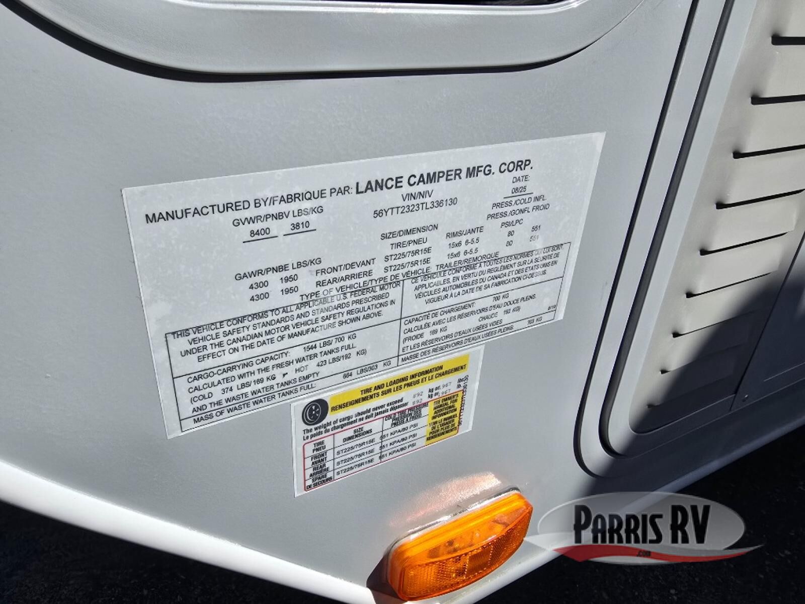 The line-up for the Lance travel trailers centers around three gorgeous interior décor options, a lengthy list of product enhancements, and simplification of ordering with many optional features being made standard. Some of the stand out features you'll want to take note of are the Keyed-Alike storage compartment doors for all of your camping essentials, the dual layer Azdel composite to prevent your unit from rotting, and the durable one-piece TPO roof. The interior includes Euro overhead cabinetry designs, a pop-up electrical/charging tower, and a Shower Miser water system. You'll also find an innerspring mattress with a bedspread, a dual pane shower skylight, USB charging ports to keep your electronics at 100%, plus a JBL AM/FM stereo and JBL interior/exterior Bluetooth speakers to keep the party going!
