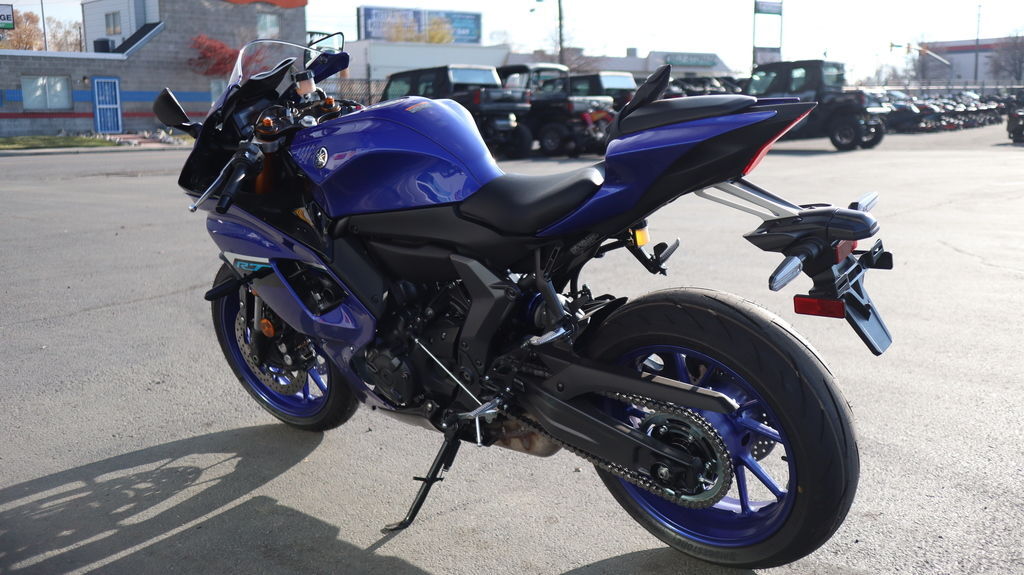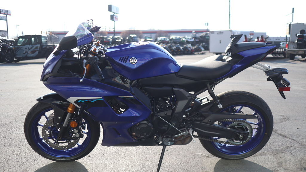 2025 Yamaha YZF-R7 WHERE R WORLD MEETS YOURS A new generation Supersport with Yamaha's legendary styling combines an advanced CP2 engine with an ultra-thin and lightweight chassis to provide torquey performance on both the track and the street. Features may include: Torquey CP2 Powerplant Yamaha's proven 689cc twin-cylinder DOHC fuel-injected engine delivers excellent power and performance throughout the rpm range for an exhilarating ride and a true Supersport experience. Its 270-degree crankshaft provides linear torque for exciting acceleration and limited vibration. Thin Proportions for Perfect Control With the slimmest proportions of the entire R-Series family, the YZF-R7 provides confident cornering performance on the track and quick, agile direction changes on twisty roads. The slim design also reduces wind resistance for optimal aerodynamics, while aerodynamic bodywork incorporates the rider's body to improve the flow of air around the bike. Sport Suspension The YZF-R7 features an inverted 41mm front fork with optimized spring rate and damping settings for an excellent front-end feel during cornering and braking. The linked-type Monocross single-shock with adjustable spring preload and rebound damping strikes an ideal balance between ride comfort and Supersport performance for capability across a wide range of uses from urban commuting to track days. Sleek R-Series Styling The YZF-R7's aggressive design boasts the slimmest bodywork in the Supersport lineup for optimal aerodynamics, handling and agility, while the signature M-shaped duct and tail wing are reminiscent of Yamaha's flagship Supersport YZF-R1. Advanced A&S Clutch An Assist & Slipper clutch reduces clutch lever force while providing seamless downshifts and a controlled feeling over the bike's engine braking. This helps make the Supersport riding experience more accessible to more riders. For fast and smooth upshifts, an optional Quick Shift System (QSS) is also available on the YZF-R7.