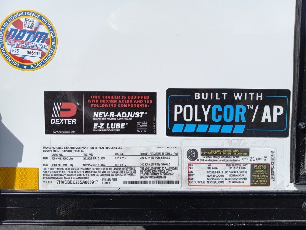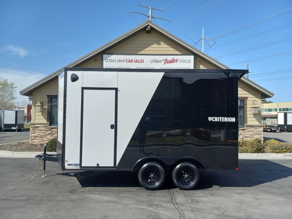 LIMITED TIME $120 A MONTH WITH ZERO DOWN WITH OUR SPECIAL LOCAL CREDIT UNION PARTNER!!! NO PRE PAYMENT-PENALTIES!!! EASY IN-HOUSE APPROVAL!!!!!!! CRITERION UTV Pkg!!! 6 inches added height for an 87 Inch Rear Entry Height, and a 90-inch interior Height!!! Extra Tough Poly Bead Rubber Floor With NUDO/DRYMAX Treat Rubber Backing! Industry Leading .080 PolyCore Aluminum Exterior!!! Rear Spoiler with LED Load Lights! Roof Vent. 6x 5000# Heavy Duty Recessed and back plated D-Rings!!! Drivers Side Side Access Door! Fuel Pass Through Door! Criterion Trailers are Super Premium Steel Framed Trailers with a 3 Year Factory Warranty!!! Come take a look at Criterion to see unparalleled quality!!! 7SA008917