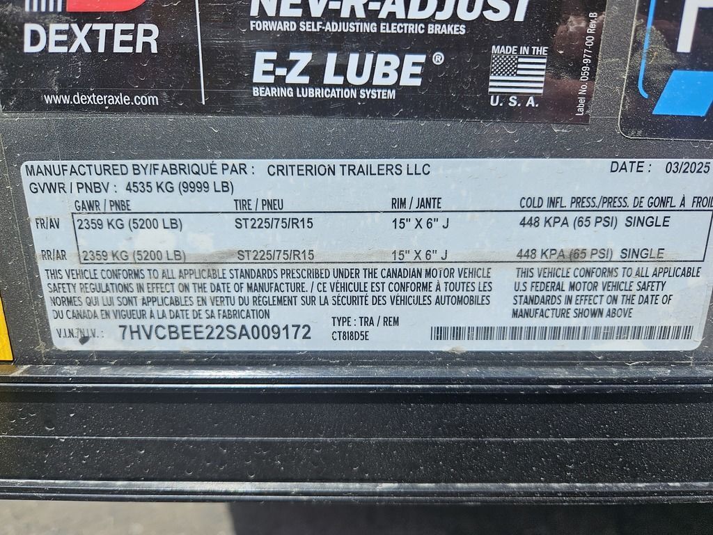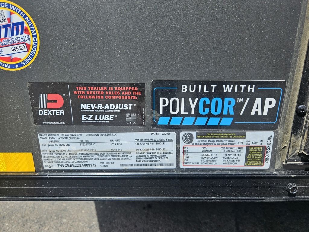 LIMITED TIME $162 A MONTH WITH ZERO DOWN WITH OUR SPECIAL LOCAL CREDIT UNION PARTNER!!! NO PRE PAYMENT-PENALTIES!!! EASY IN-HOUSE APPROVAL!!!!!!! CRITERION UTV Pkg!!! 5,200# Axles!!! 10,400# GVWR!!! 6 inches added height for an 87 Inch Rear Entry Height, and a 90-inch interior Height!!! Extra Tough Poly Bead Rubber Floor With NUDO/DRYMAX Rubber Backing! Industry Leading .080 PolyCore Aluminum Exterior!!! Rear Spoiler with LED Load Lights! Roof Vent. 6x 5000# Heavy Duty Recessed and back plated D-Rings!!! Drivers Side Side Access Door! Fuel Pass Through Door! Criterion Trailers are Super Premium Steel Framed Trailers with a 3 Year Factory Warranty!!! Come take a look at Criterion to see unparalleled quality!!! 7SA009172