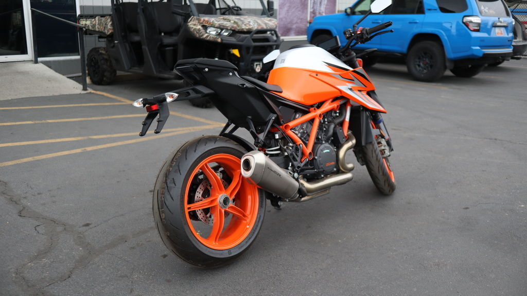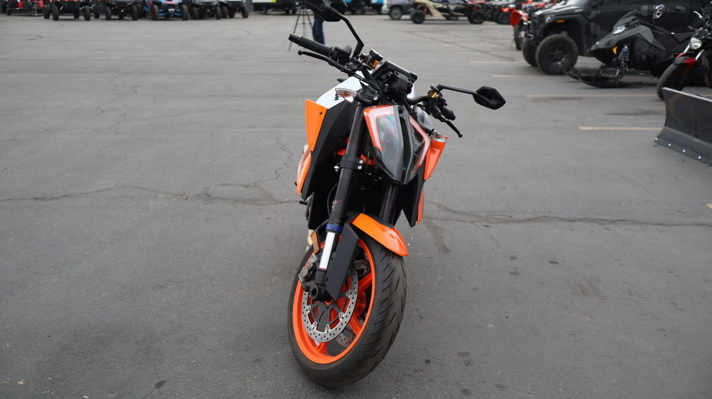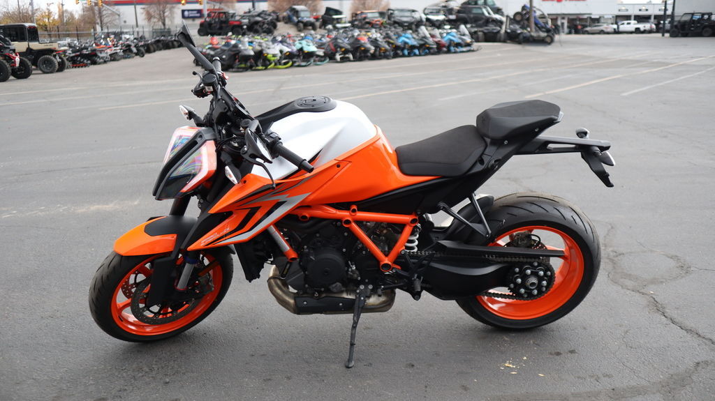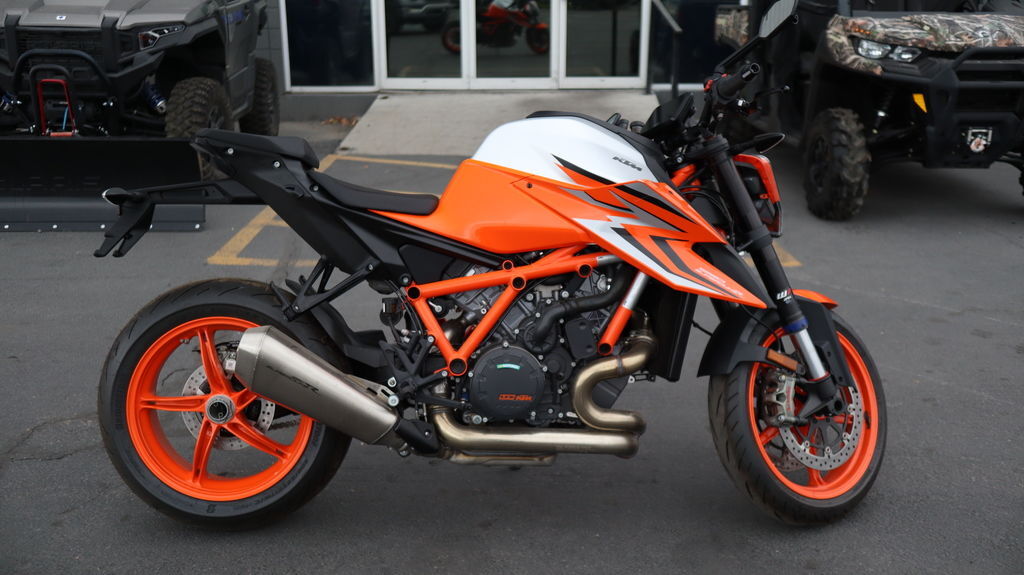 2023 KTM 1290 Super Duke R EVO Evolution and adaption are critical when it comes to maintaining one's status as the top dog. The KTM 1290 SUPER DUKE R EVO is a BEAST - evolved. Boasting intuitive Semi-Active Suspension Technology (SAT), this BEAST not only adapts to the road surface but also to the rider's inputs - making it a cold, calculated hunter. A frightening prospect for any would-be challenger. Features may include: ENGINE & EXHAUST Engine If it ain't broken, don't fix it. But by all means, make it meaner! Boasting 180 hp and 140 Nm, the 1301 cc LC8, V-Twin has undergone a subtle yet impactful development. Optimized to be lighter but retaining its torquey character, this powerhouse is the benchmark of V-twin evolution. And with engine and linkage mounts that add to the overall structure of the entire package - it quite literally is the part that holds THE BEAST together. CHASSIS Frame The frame, which uses the engine as a means to increase torsional rigidity, has resulted in the KTM 1290 SUPER DUKE R EVO being 3 times stiffer than its predecessor. This allows for an effortless, confidence-inspiring riding position which translate into an ultimately faster ride. This is achieved by maximizing the feedback from the chassis and the front tire. The frame also makes use of thicker diameter tubes with thinner walls, which is the single biggest weight saving measure on the bike - saving 2 kg compared to the previous generation model. ERGONOMICS & COMFORT Handlebar Finding the optimal seating position is made easy with an adjustable 760 mm wide handlebar. Riders can tailor their preferred reach with 4 positions over 22 mm, front to back, making it easy to attack corners and crucial for hanging on down the straights. SOFTWARE & ELECTRONICS LED Headlight While the headlight mask doubles as an intake snorkel, it's the twin LED headlights that really shine. Sharp, menacing lines enhance THE BEAST's overall look, while providing ample illumination when it gets dark. Daytime running lights also ensure you will get noticed, which not only earns you kudos when it comes to street cred, but more importantly, makes you more visible to other road users.