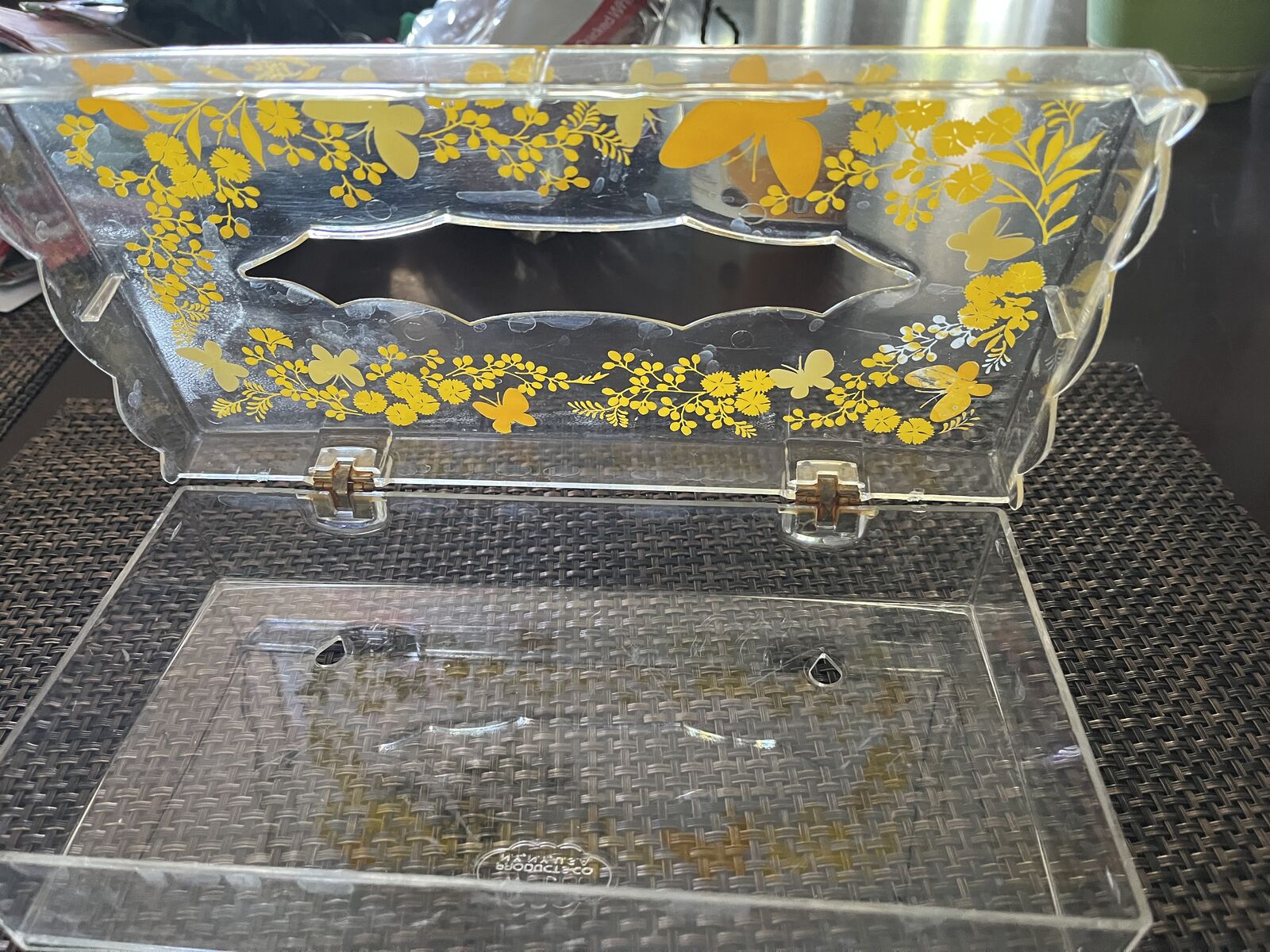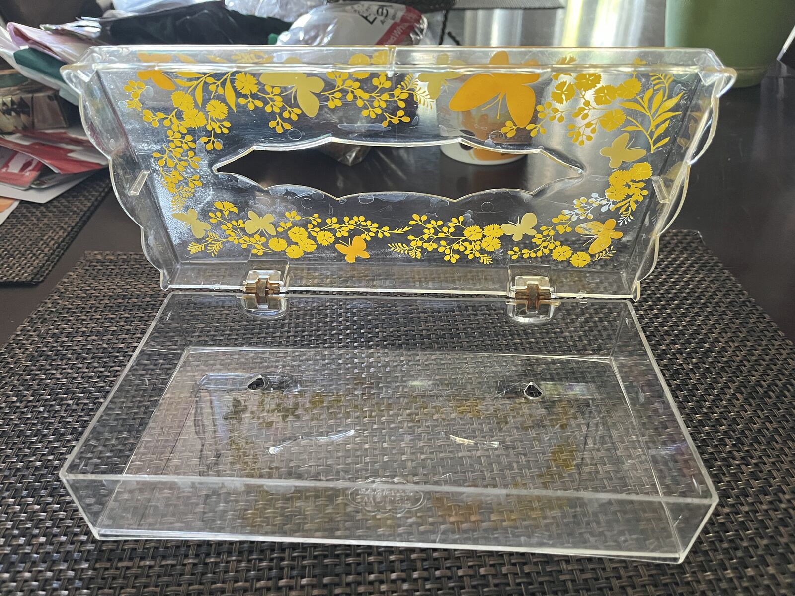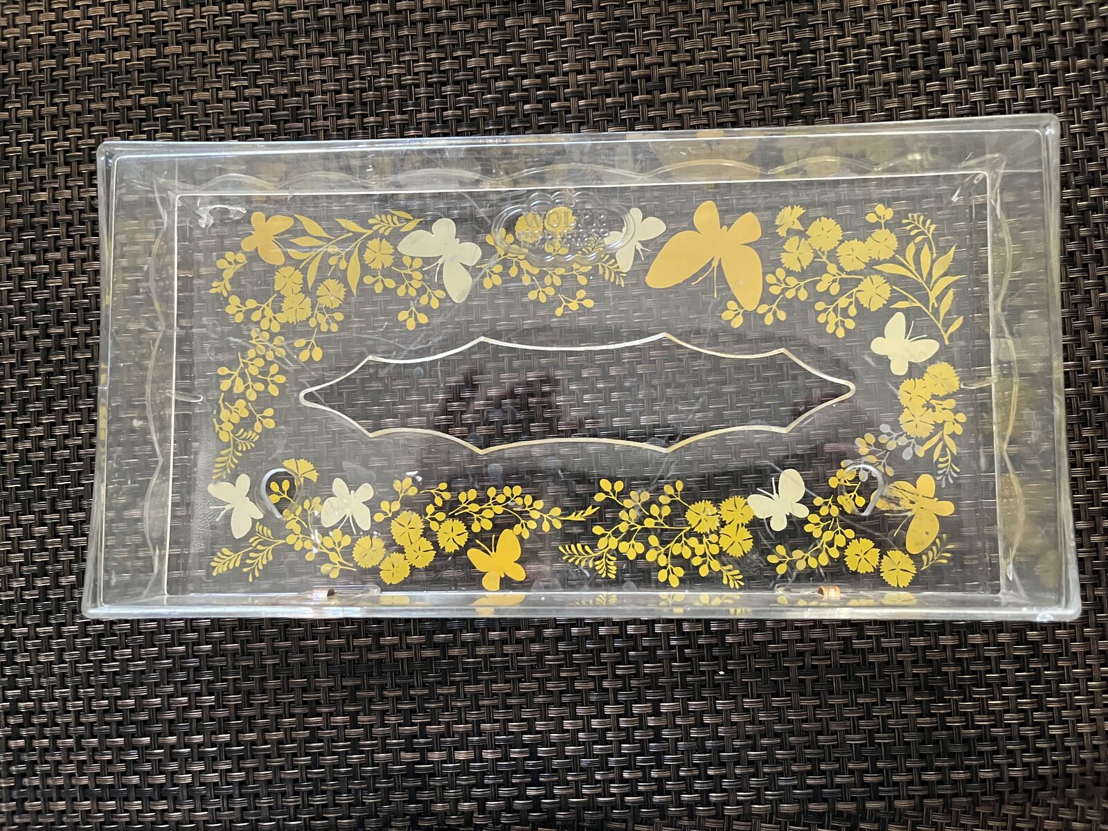 1960's Vintage Wolff Clear Plastic Tissue Holder with Orange / Yellow butterfly decor $10