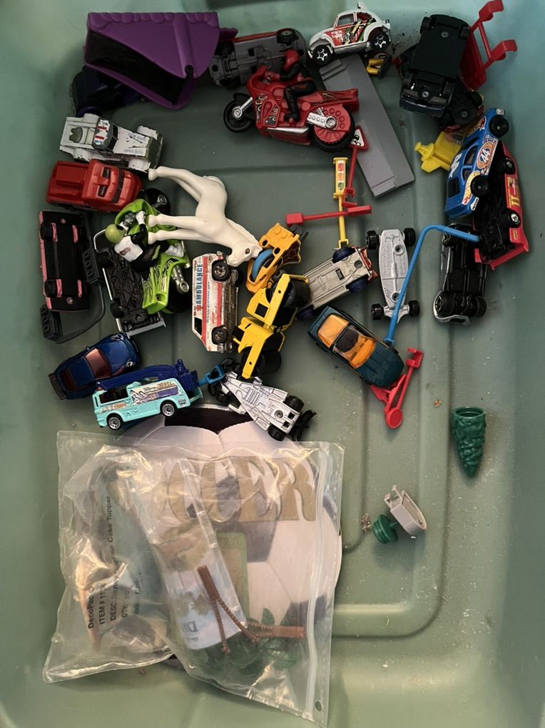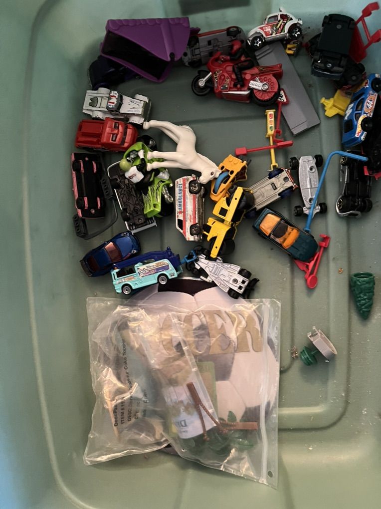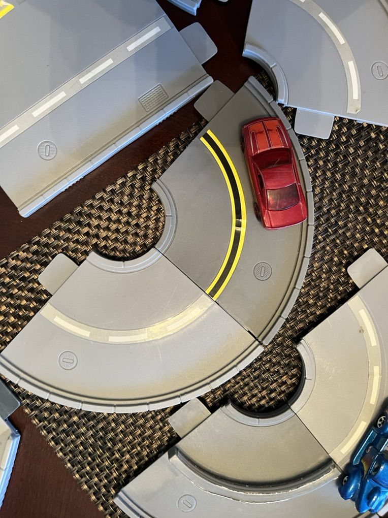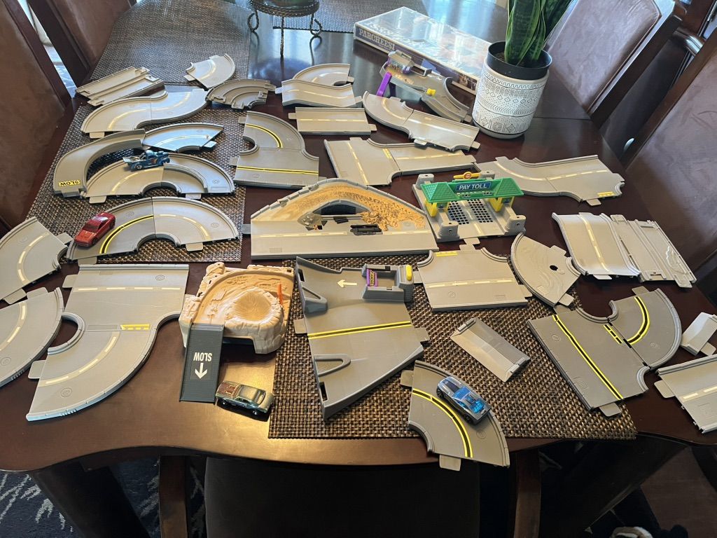 Toy cars and race track $10