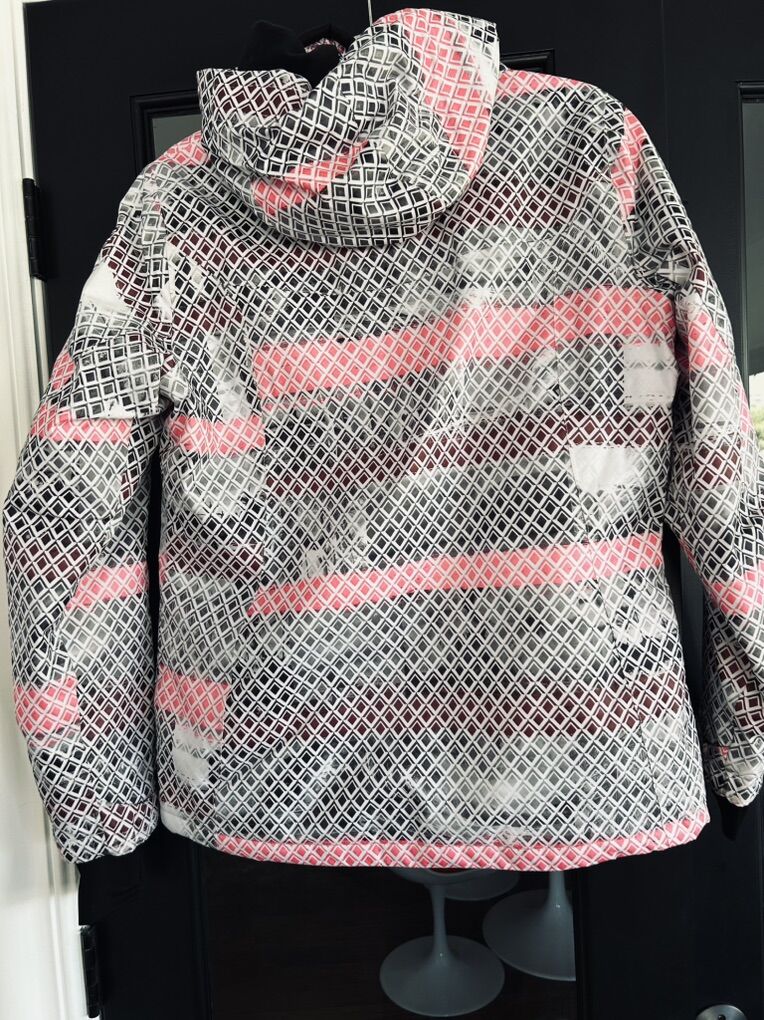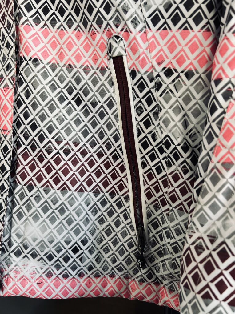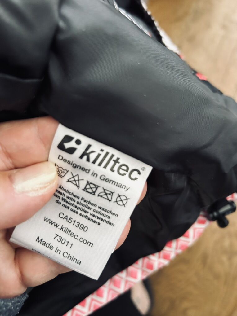 ZelleThis Women's Killtec Parka in size 10 is a stylish and practical outerwear option for travel and casual occasions. The parka features a polyester outer shell with a softshell fabric type, making it lightweight, water resistant, and wind resistant. It has a full zip closure with zipper and logo accents, as well as inner and zipped pockets for convenience. The parka is designed with a relaxed fit, insulated for cold weather, and has an elastic waist for added comfort. Made with high-quality materials and a geometric pattern, this mid-length parka from Killtec is a versatile choice for outdoor activities in the winter and fall seasons.