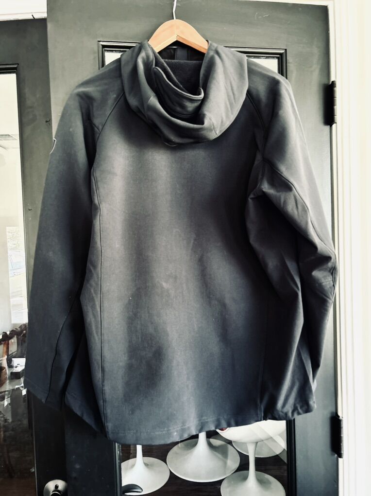 ZelleThe Kuhl Projekt Jacket for women in size L is a black lightweight outdoor jacket perfect for hiking and other outdoor activities. Made of polyester with a softshell fabric type, this mid-length jacket features a zip closure, long sleeves, and a solid pattern. The jacket is machine washable and has a regular fit, making it a practical and versatile choice for the winter and fall seasons. With its classic outdoor theme and subtle logo accents, this Kuhl jacket combines style and functionality for the modern woman on the go.