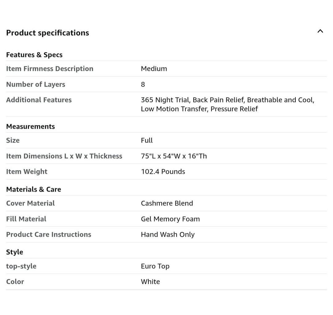 Premier Rest 16" Full Mattress - Luxury Hybrid Memory Foam - 365 Night Trial - 8 Premium Pressure-Relieving Layers - Forever Warranty - CertiPUR-US Certified