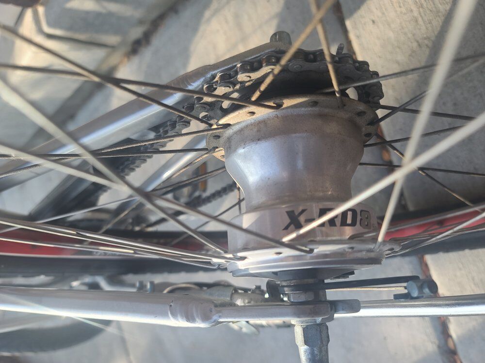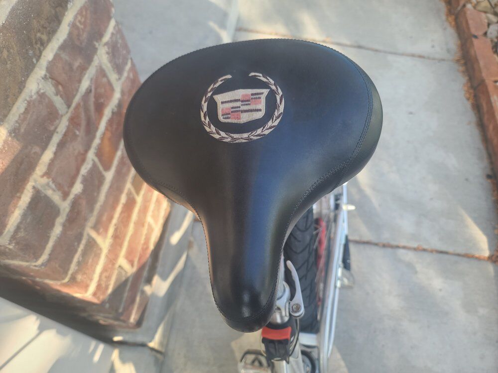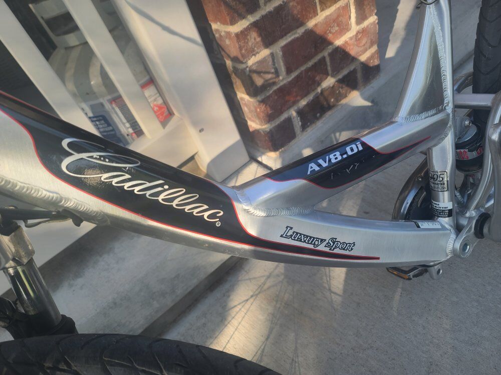 This is a rare collector bicycle made by Cadillac. It's an xrd 8 speed with an internal gear hub. It has sturmy archer hubs and drum breaks. Front shocks are VRS variable rate shocks, back are KS shocks. Friction powered headlight.