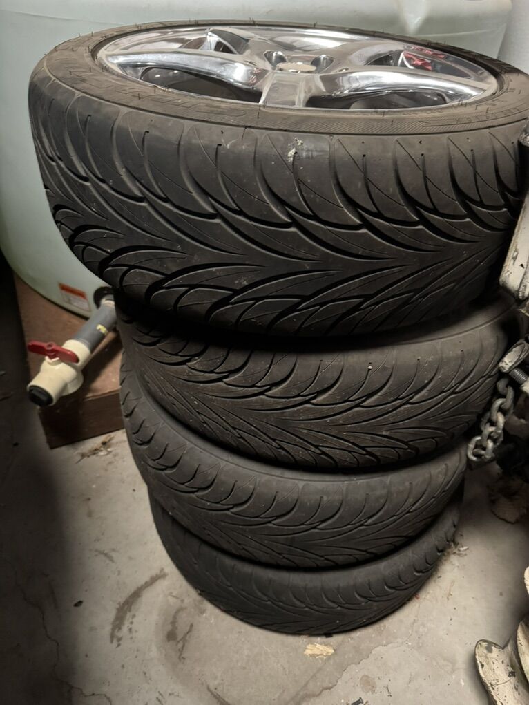 VenmoRims and tires are in great shape, tires are almost brand new. They are Federals and the size is 245 45 19, they also come with wheel spacers if you need them. Let me know if you have any questions. $600 obo