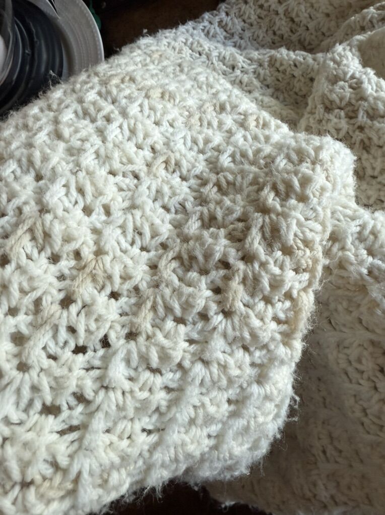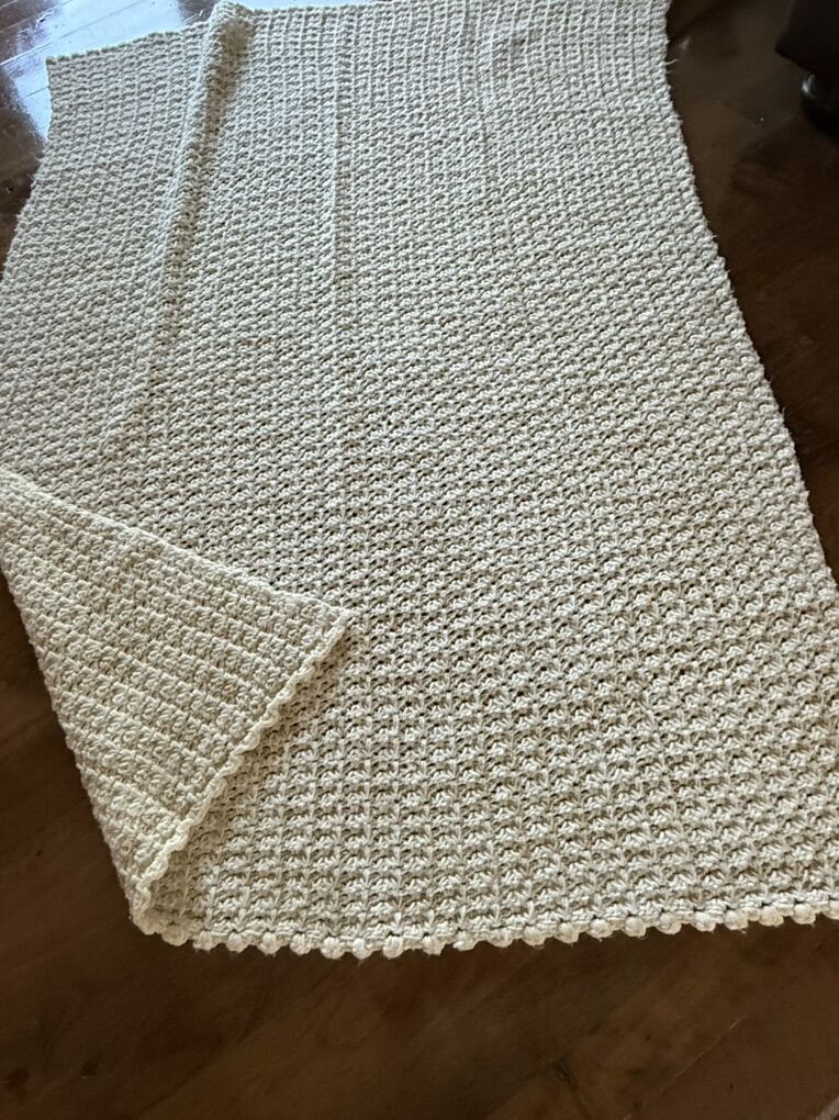 60” by 49” handmade afghan throw blanket light tan and beige colored