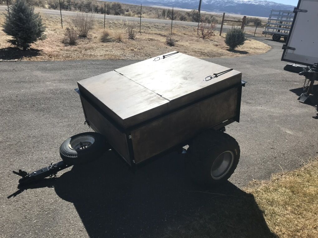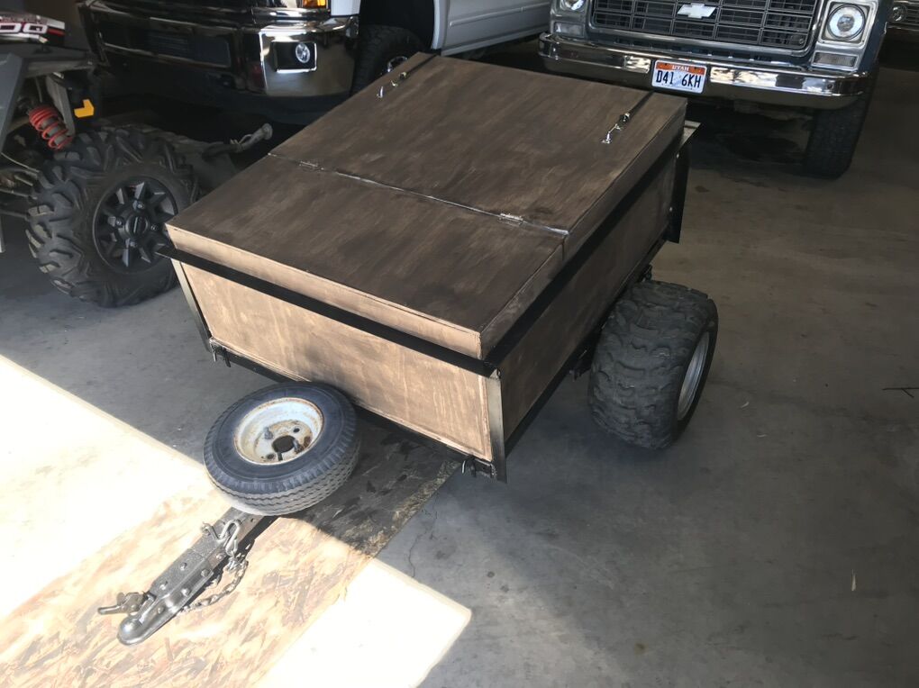 VenmoI built the trailer to pull behind my rzr. Its never been used, it also comes with street trailer tires as well. The dimensions of the box is 4ftx4ft, the inside has carpet, it’s also caulked inside and stained and sealed outside. Let me know if you have any questions. $400 obo