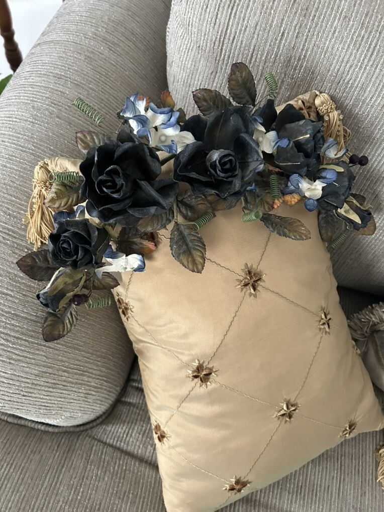 12 to 14 inch small floral accent decor. Can hang or sit as accent.