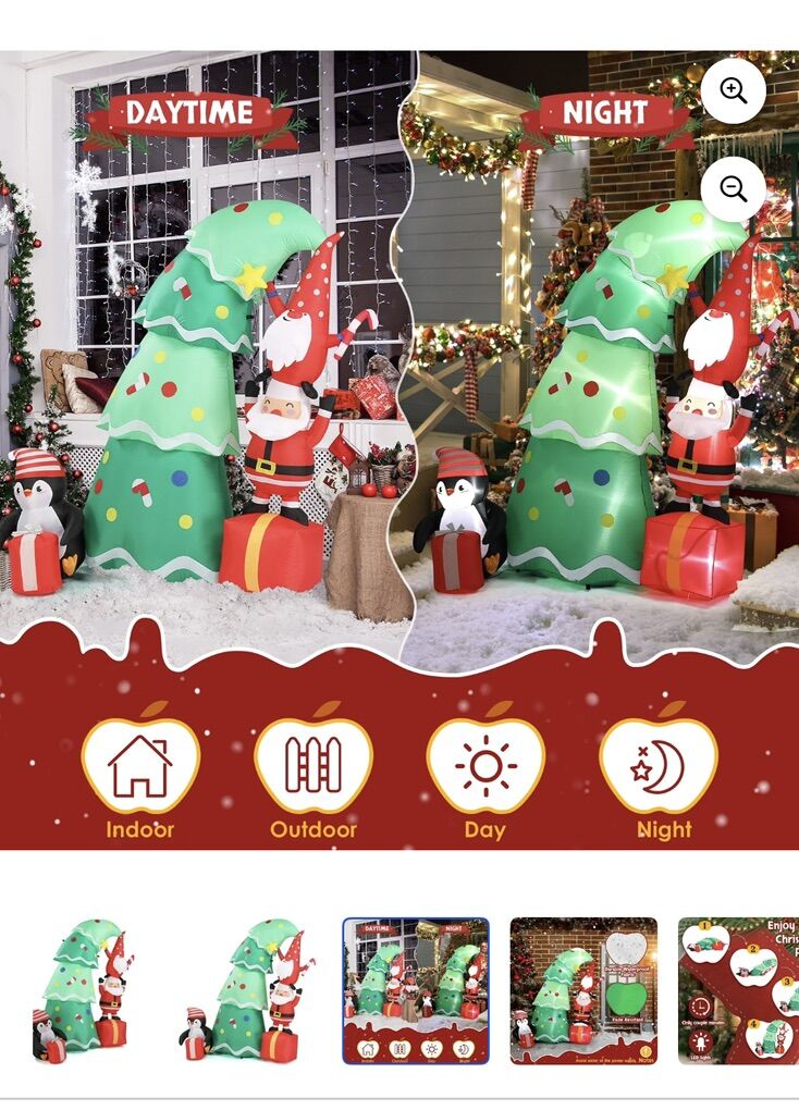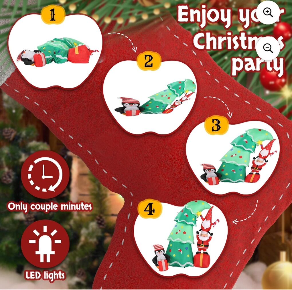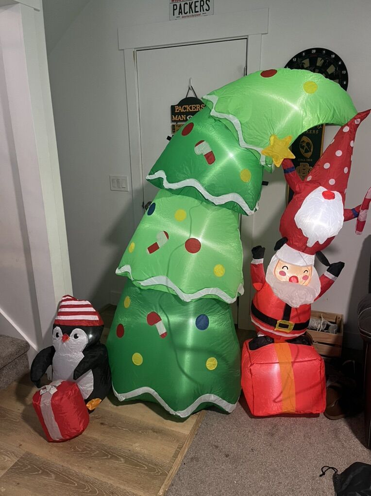 6 FT Lighted Christmas Inflatable Decoration - Christmas Tree with Elf, Santa Claus & Penguin, Built-in LED Lights, Weather-Resistant for Front Yard, Lawn, Garden & Holiday Parties