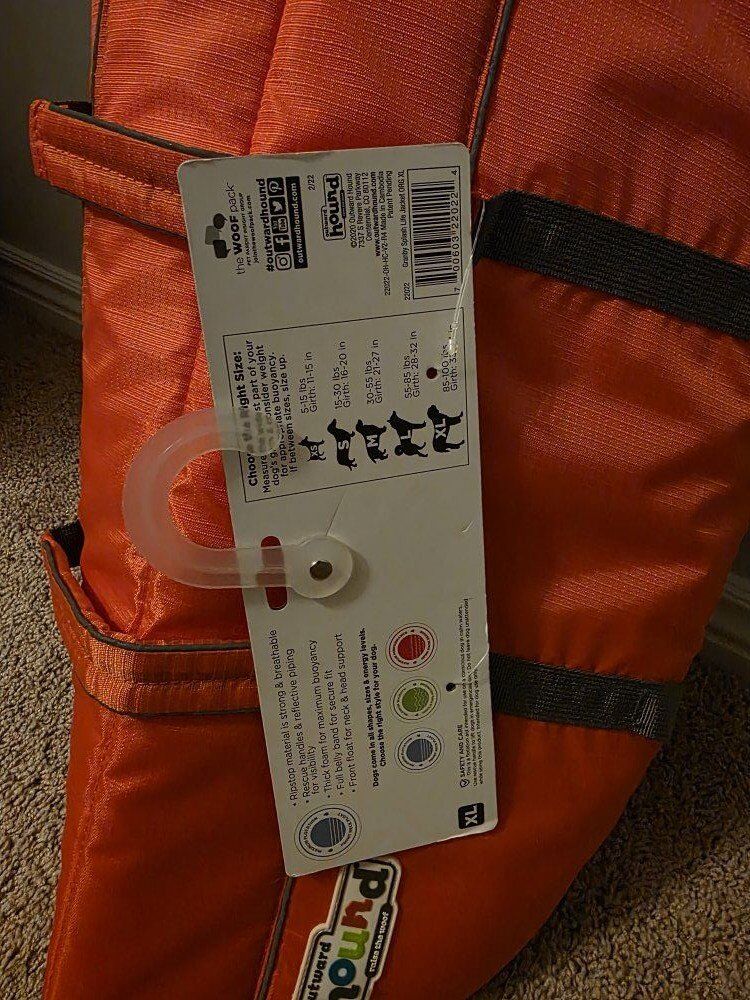 Brand new with tags orange Outward Hound life jacket for dog. Size XL for chest 33-44in. Cash only please.