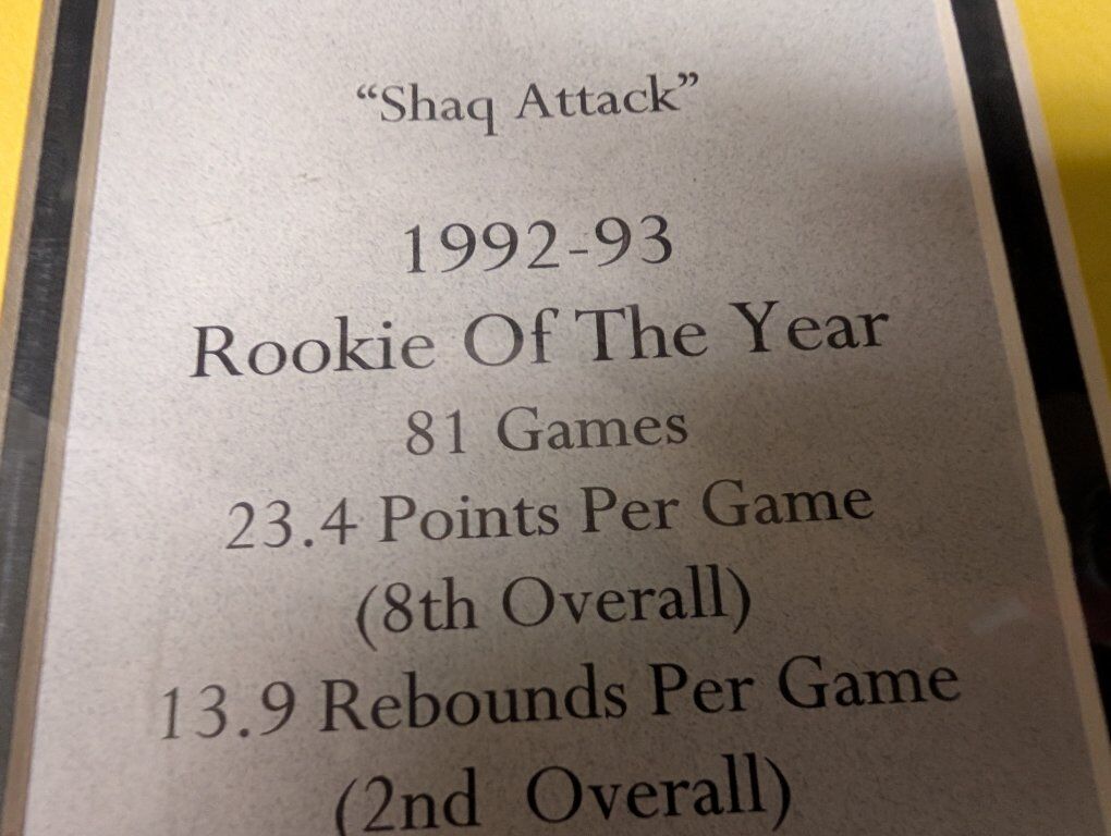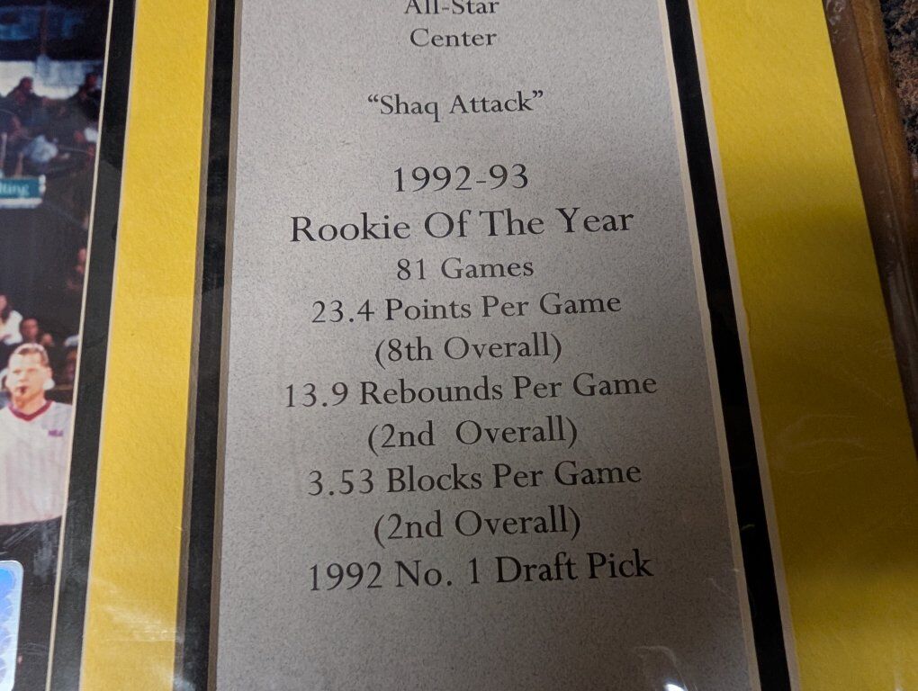 PayPalThe product is a rare Shaquille O'Neal All-Star Center Shaq Attack Rookie of the Year NBA Licensed Picture with Stats licensed by the NBA and released by Walt Disney. This officially licensed product features a picture of Shaquille O'Neal from his time with the Los Angeles Lakers in the National Basketball Association (NBA). Made in the United States, this collectible item is a must-have for basketball fans and collectors alike. Perfect for showcasing team pride or displaying in a sports memorabilia collection. Mint condition and in the original plastic. 75 dollars or best offer. Will ship world wide.