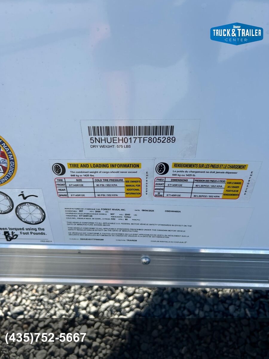 Standard Features • Single Rear Doors • 18" Wedge-Front Nose • C/S Door (24" on 5' Wide, 32" on 6' & 7' Wide, 36" on 8' Wide) • Semi-Style Camlock Door Latch • Door Hold-Back on Rear Door • Leaf-Spring Axle • Silver Powder Coated Wheels • Bias Tires • Galvanized Roof • Aluminum Top Rails • 16" ATP Stoneguard • (1) 12V Dome Light • (2) Flow Thru Sidewall Vents (on 5, 6, 7, & 8' Wides) • DOT Lighting • Aluminum Exterior Fenders • Clear Lens LED Clearance Lights • Clear Lens LED Strip Tail Lights • License Plate Holder with Built-In Light • .024" White Aluminum Exterior • ATP Aluminum Wrap on Rear • Exposed Steel Painted Epoxy Black • Z-Tech Undercoated Frame • Welded Safety Chains • Full-Color Decals