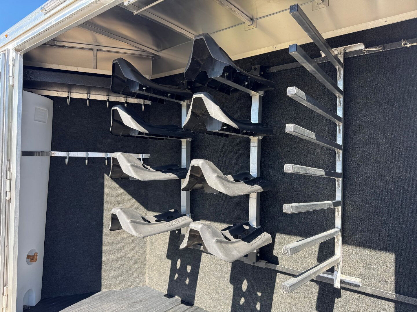 **DEMO MODEL – 2024 Logan Coach 6-Horse Stockman Combo Trailer** **SAVE THOUSANDS off retail – fully loaded and ready to haul!** Whether you’re heading to rodeos, shows, camping trips, or mountain rides, this versatile trailer is built to handle it all. This **2024 Logan Coach Stockman Combo** is a **demo model** packed with premium standard features **plus tons of upgrades** you won’t want to miss. *** ### Key Features **Trainer’s Tack Room** * Oversized double doors * Extra shelves and storage * Corner water tank * Additional blanket rack * 12V & 120V power outlets **Dressing Room Comforts** * Extra hooks and shelf for organization * Maxx Air fan for ventilation * A/C with heat strip * Keyless lock * Rubber mat flooring *** ### Upgrades & Options * Hydraulic jack with (2) batteries * Extra exterior lights for saddling and loading * Spread axles with brand-new rims and tires * Solid double rear doors for safer hauling * Hanging rubber mats on each divider * Solid 4th divider – perfect for hauling 4 horses plus steers/calves This trailer is built for serious hauling and all-season comfort. Whether you’re hauling horses, livestock, or gear, this setup is ready for whatever your season has in store. *** **Don’t Miss Out!** This trailer won’t last long at this price. Come see it in person or contact us today to schedule a viewing. **Trades welcome. Financing available.**