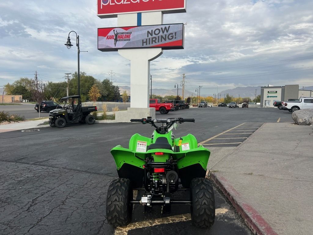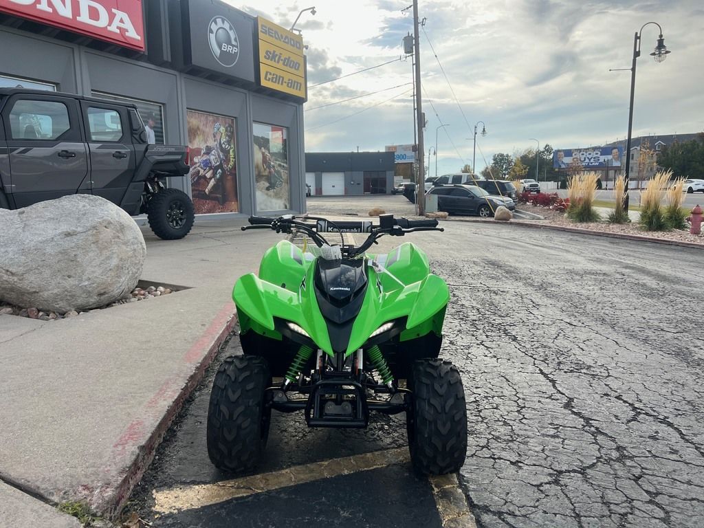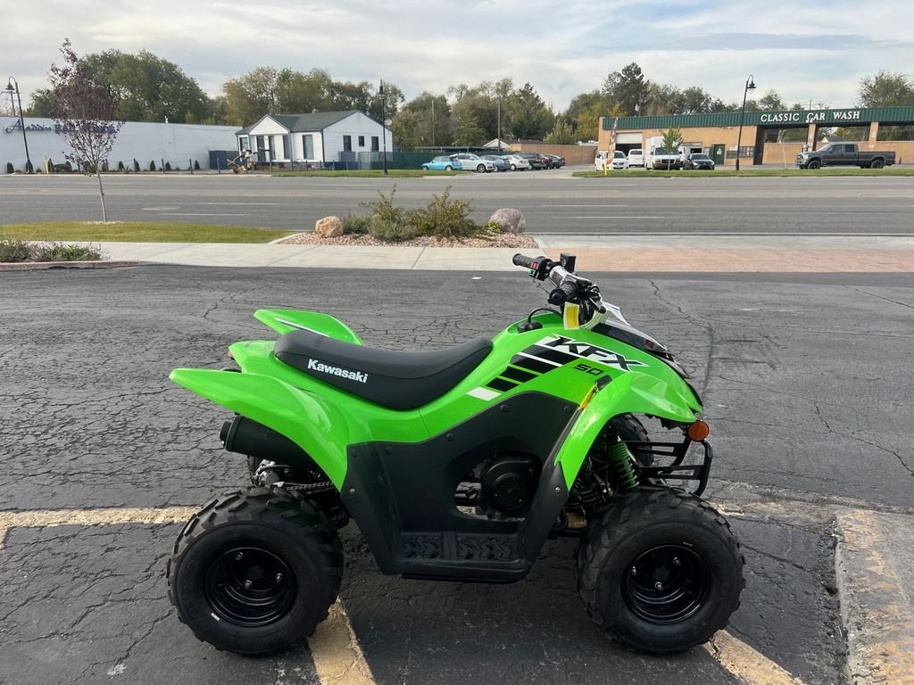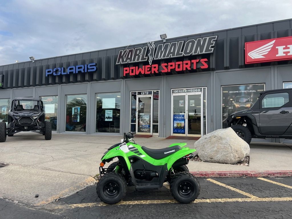 New 2025 Kawasaki KFX 50 ATV For Sale In Salt Lake City, UT This New 2025 Kawasaki KFX 50 ATV is for sale at Karl Malone Powersports SLC conveniently located in Salt Lake City, Utah. Our knowledgeable team is eager to assist you, so don’t hesitate to contact us today to schedule an appointment. If this isn't the exact Kawasaki ATV you're looking for don't hesitate to go back and revise your search. We're sure to have the perfect ATV for you in our showroom in Utah. We invite you to visit us at Utah’s premier Kawasaki dealer for new and pre-owned ATVs for sale. Let us help you find the ideal ATV to take home today! Karl Malone Powersports SLC Address: 1379 W 3300 S, Salt Lake City, UT 84119 Phone: (801) 972-8725 2025 Kawasaki KFX 50 Four-wheel fun starts with KFX®. Give kids ages 6 and older the ability to confidently tackle the dirt. KFX®50 ATVs are ideal for young riders to start their adventure, featuring 49.5cc of power and smooth performance that can help give riders experience in a controlled manner. Features may include: A STRONG START PERFECT FOR YOUNG RIDERS (AGES 6+) The KFX®50 ATV for ages 6 and older is the starting place for many first-time ATV riders. The 49.5cc 4-stroke engine starts with the push of a button and features an engine stop lanyard while the automatic transmission helps deliver smooth power, beginner-friendly performance, and rock-solid reliability. STAY IN CONTROL SAFETY FIRST Parental controls include a keyed ignition to help address unsupervised use as well as speed controls with an adjustable throttle limiter and automatic Continuously Variable Transmission (CVT) collar that allow the speed and performance to be adjusted to match rider experience. WELCOME TO FOUR WHEELS EASY TO HANDLE Independent A-arm front suspension and swingarm rear suspension soak up bumps for a smooth ride and sporty handling, packing a lot of fun into a small package. RIDE IN STYLE SPORTY DESIGN Front LED accent lights, and LED taillights add to the already race-inspired bodywork. Additionally, a tall design of the front fenders conveys a strong sporty off-road performance look. ADDITIONAL Sporty front-end styling Front LED accent lights and LED taillights Full coverage floorboards with a slip-resistant design Independent A-arm front suspension and swingarm rear suspension