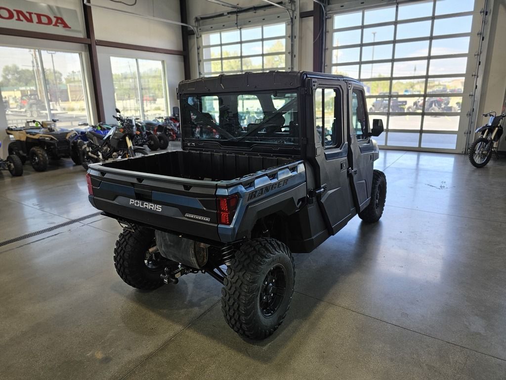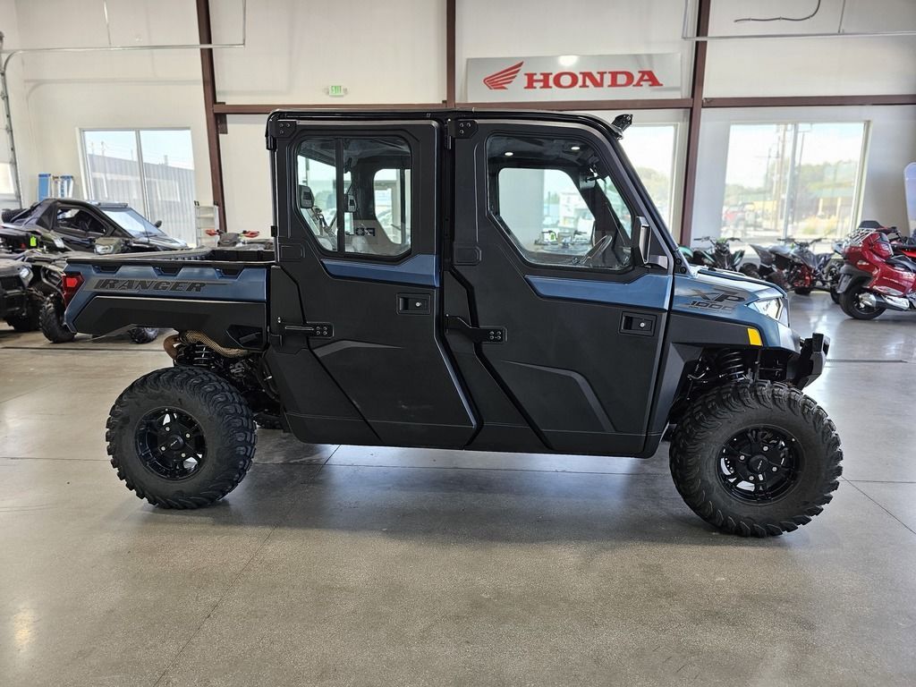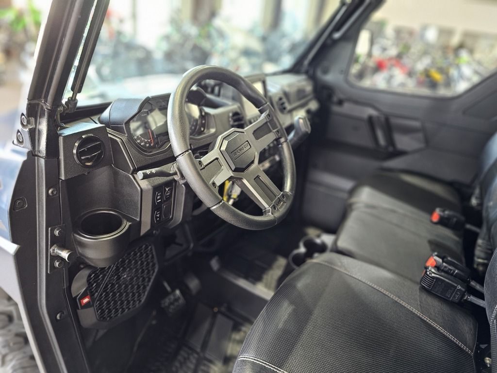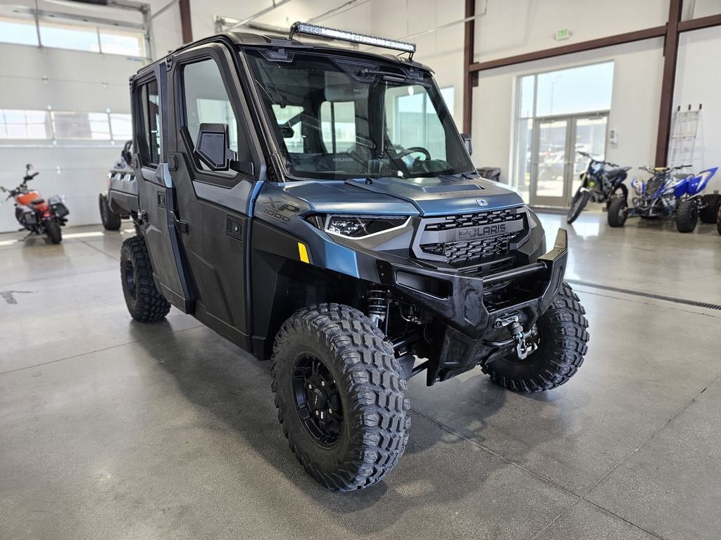 2025 Polaris® Ranger Crew XP 1000 Northstar Edition Ultimate FEND OFF THE ELEMENTS OFF-ROAD CLIMATE CONTROL Rain or shine, there's no stopping you from getting the work done with RANGER XP 1000 NorthStar Edition. Features may include: COMFORT Every detail of the refined interior puts the driver and passengers first for comfort and convenience. Keep the Elements Out The factory-installed Pro Shield cab system protects from dust, dirt and water, and reduces noise—so you can enjoy conversation and comfortably ride in rainy, snowy or dusty conditions. Control Your Climate Factory-installed heating and air conditioning lets you control the climate for all-season comfort. For quick relief on hot days, a variable AC compressor automatically varies its pumping capacity to deliver faster cooling and lower temperatures, even when at idle and low engine RPMs. Sunup to Sundown Comfort Find your happy place with a tilt steering wheel and newly styled, adjustable contoured seats featuring back bolsters and extra-plush seat cushions. In-Cab Convenience Secure a spot for your must-have items with a dual integrated glove box and up to 8 cup holders. Plus, charge your devices with a USB charging port. NORTHSTAR EDITION ULTIMATE FEATURES Elevate the ultimate off-road, in-cab experience further by upgrading to the NorthStar Edition Ultimate. Immersive Sound System Elevate your day with audio, thanks to integrated JBL speakers that deliver precise audio clarity and premium sound. Enjoy AM/FM radio or connect to Bluetooth via the RIDE COMMAND infotainment system. Convenient Power Windows Enjoy the convenience that comes with front-door power windows, featuring a sure-closing, tight-sealing 360° gasket seal to the vehicle. Control Your Coverage Close the Pro Shield Full Glass Tip-Out Windshield for protection from the elements. Open it to experience the breeze and open-cab feel. Capability Meets Utility The RANGER XP 1000 NorthStar Edition makes every task easier with thoughtful innovation and toughness. Performance with Precision Stay smooth and controlled on the job or trail, thanks to 3-position throttle control with different drive modes. Choose Performance for more response, Standard for normal throttle response, or Work for improved low-speed control. Equipped to Adapt Adapt to the terrain with 3 driveline modes: AWD, 2WD and VersaTrac Turf. For work around the house, use VersaTrac Turf Mode to unlock the rear differential—enabling easier and tighter turns that won't tear up your lawn.