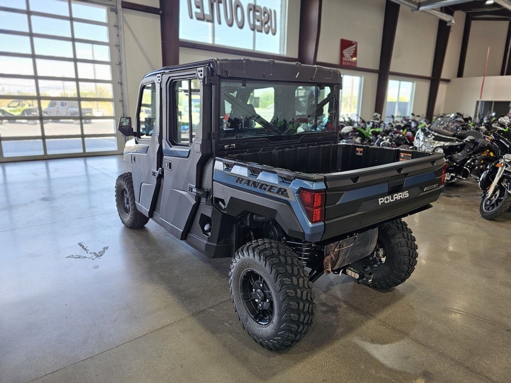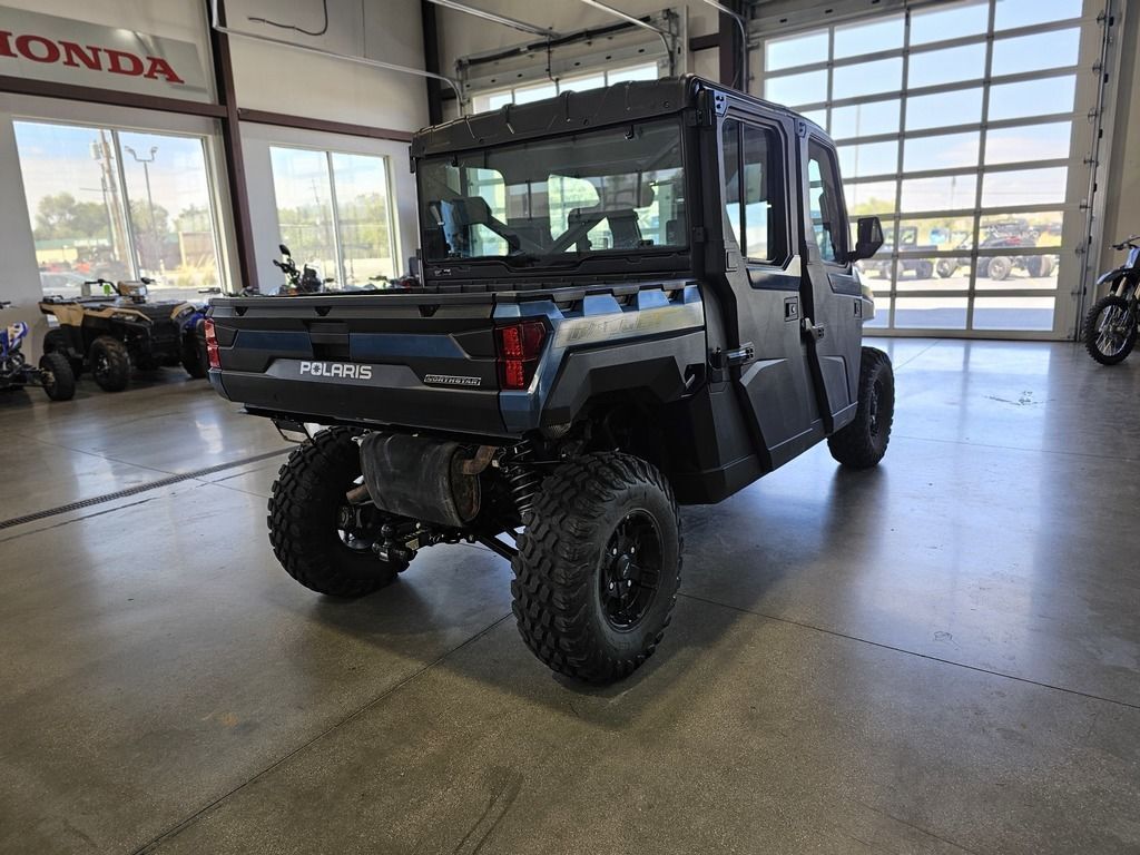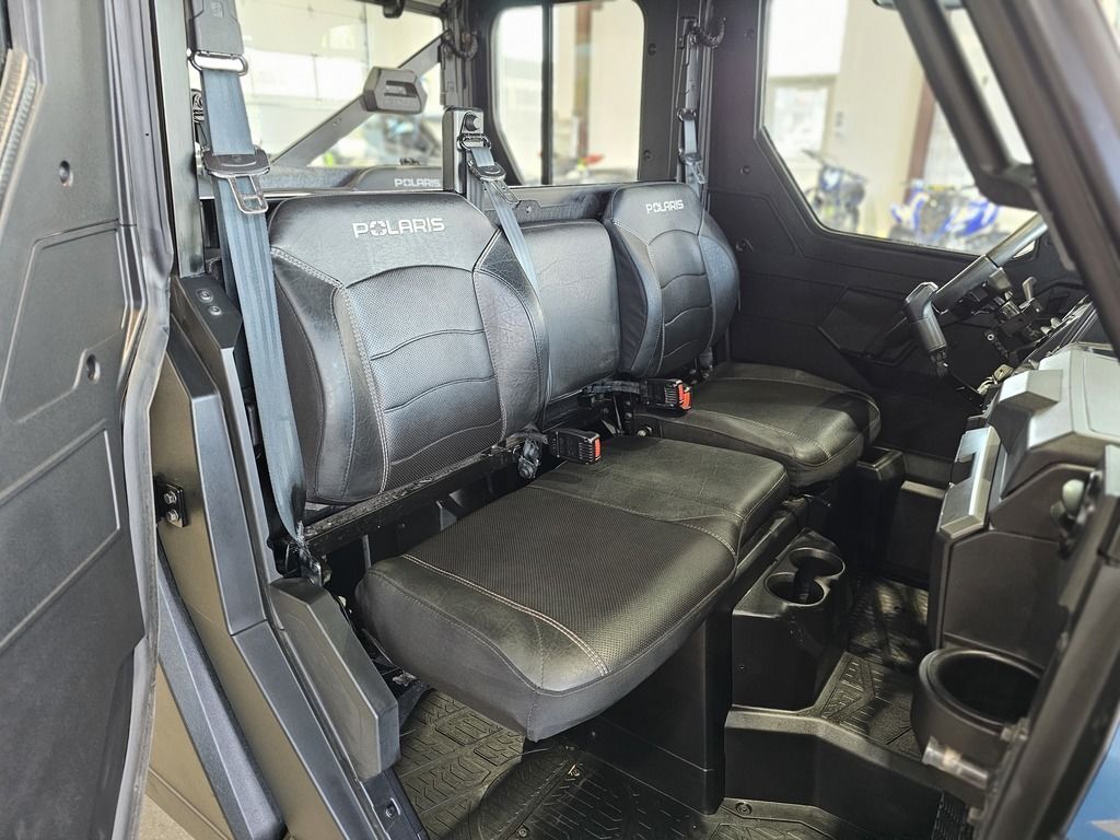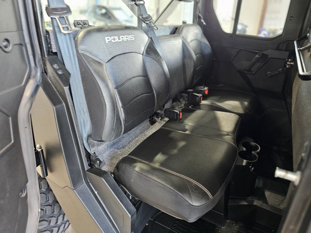2025 Polaris® Ranger Crew XP 1000 Northstar Edition Ultimate FEND OFF THE ELEMENTS OFF-ROAD CLIMATE CONTROL Rain or shine, there's no stopping you from getting the work done with RANGER XP 1000 NorthStar Edition. Features may include: COMFORT Every detail of the refined interior puts the driver and passengers first for comfort and convenience. Keep the Elements Out The factory-installed Pro Shield cab system protects from dust, dirt and water, and reduces noise—so you can enjoy conversation and comfortably ride in rainy, snowy or dusty conditions. Control Your Climate Factory-installed heating and air conditioning lets you control the climate for all-season comfort. For quick relief on hot days, a variable AC compressor automatically varies its pumping capacity to deliver faster cooling and lower temperatures, even when at idle and low engine RPMs. Sunup to Sundown Comfort Find your happy place with a tilt steering wheel and newly styled, adjustable contoured seats featuring back bolsters and extra-plush seat cushions. In-Cab Convenience Secure a spot for your must-have items with a dual integrated glove box and up to 8 cup holders. Plus, charge your devices with a USB charging port. NORTHSTAR EDITION ULTIMATE FEATURES Elevate the ultimate off-road, in-cab experience further by upgrading to the NorthStar Edition Ultimate. Immersive Sound System Elevate your day with audio, thanks to integrated JBL speakers that deliver precise audio clarity and premium sound. Enjoy AM/FM radio or connect to Bluetooth via the RIDE COMMAND infotainment system. Convenient Power Windows Enjoy the convenience that comes with front-door power windows, featuring a sure-closing, tight-sealing 360° gasket seal to the vehicle. Control Your Coverage Close the Pro Shield Full Glass Tip-Out Windshield for protection from the elements. Open it to experience the breeze and open-cab feel. Capability Meets Utility The RANGER XP 1000 NorthStar Edition makes every task easier with thoughtful innovation and toughness. Performance with Precision Stay smooth and controlled on the job or trail, thanks to 3-position throttle control with different drive modes. Choose Performance for more response, Standard for normal throttle response, or Work for improved low-speed control. Equipped to Adapt Adapt to the terrain with 3 driveline modes: AWD, 2WD and VersaTrac Turf. For work around the house, use VersaTrac Turf Mode to unlock the rear differential—enabling easier and tighter turns that won't tear up your lawn.