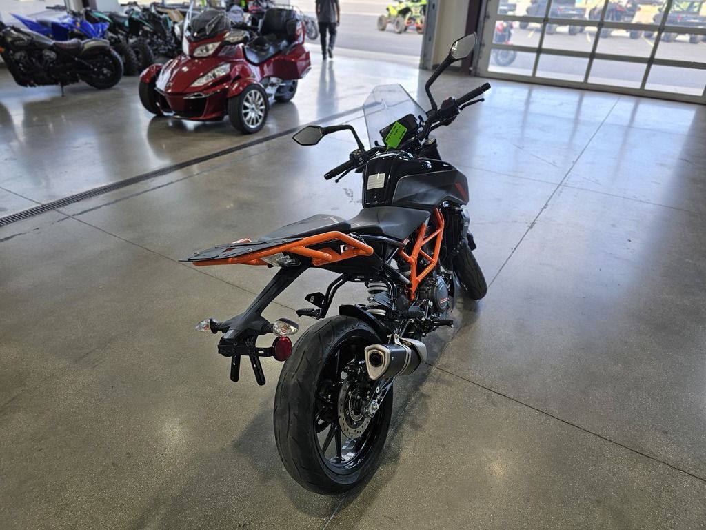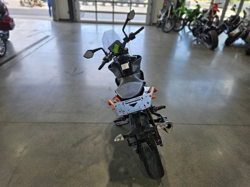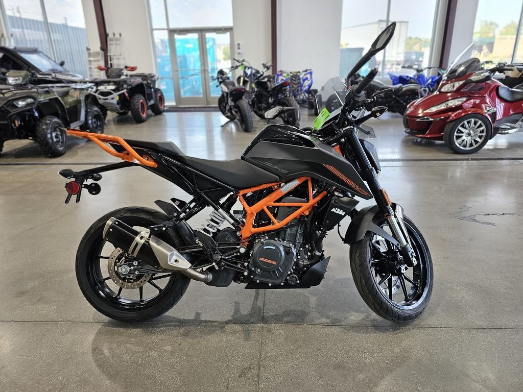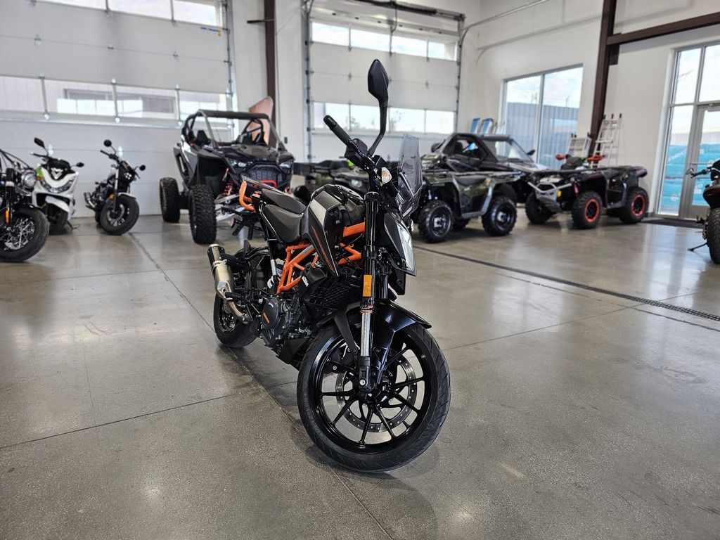 2023 KTM 390 Duke THE CORNER ROCKET The KTM 390 DUKE is a pure example of what draws so many to the thrill of street motorcycling. This Corner Rocket maximizes enjoyment and user value, taking the honors wherever nimble handling counts. Light as a feather, powerful and packed with state-of-the-art technology, it guarantees a thrilling ride, whether you're fighting your way through the urban jungle or carving your name into a forest of bends. Features may include: ENGINE & EXHAUST Engine The KTM 390 DUKE engine not only delivers arm-wrenching torque and hair-raising acceleration, but also good manners in everyday use, all with outstanding fuel economy. This lightweight, compact engine really packs a punch and with 32 kW (44 hp) it's one of the most powerful options out there for A2 riders. Thanks to the ingenious intake design and the meticulous fuel injection system, the KTM 390 DUKE is ready and waiting to tear-up the streets and the circuits alike. CHASSIS Suspension The KTM 390 DUKE comes as standard with ultra-lightweight, high-performance upside-down WP forks. Using the latest open-cartridge technology, these forks not only perform above expectations when pushed to the limits, but are also nice and easy to maintain. This makes them perfect for all aspects of riding, from relaxed cruising to hammering around on closed circuits and everything in between. ERGONOMICS & COMFORT Handlebar Hi-tech upright handlebars offer KTM 390 DUKE riders a controlled yet aggressive body position, allowing you to dominate in all aspects of riding. From destroying corners to pulling the perfect stoppie, these bars will give you the balance and confidence you need to attack the road like never before. Clutch and brake levers are fully adjustable, allowing you to customize your cockpit to suit your individual riding style. BODYWORK & GRAPHICS TFT color display As an absolute first in its class, the KTM 390 DUKE boasts an innovative multicolor TFT display, presenting all the data you need to go faster in a clear-cut, uncluttered way. As you rev the engine, the display bars change color, either spurring you on or telling you to back off when the engine’s still cold. The display also automatically adapts its color to best suit the light conditions around you. Innovation at its best!!! SOFTWARE & ELECTRONICS Rider aids The KTM 390 DUKE utilizes market leading technology to enhance your ride and provide you with all the assistance you need to help turn the streets into your own personal playground.