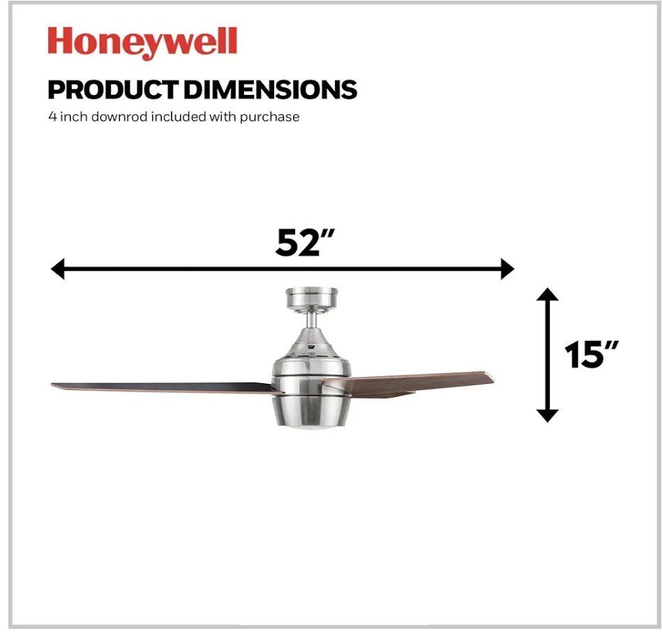 Honeywell Ceiling Fans Eamon Modern 52 Inch Ceiling Fan with Light, Remote Control Fan, LED Indoor Fan with 3 Blades, Brown Maple and Black Blade Finish Options, Brushed Nickel (50604-01) Amazon's Choice