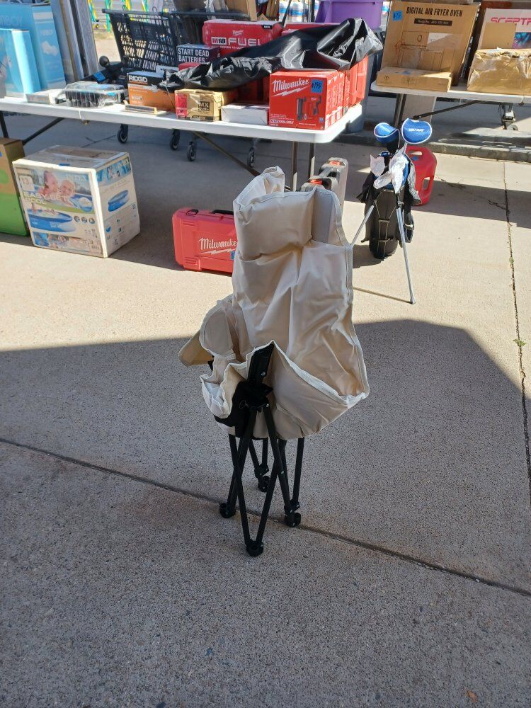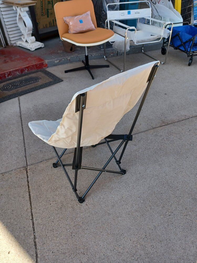 off-white folding camp chair approximately 24 in wide 16 in deep 36 in tall brand new any questions please message me