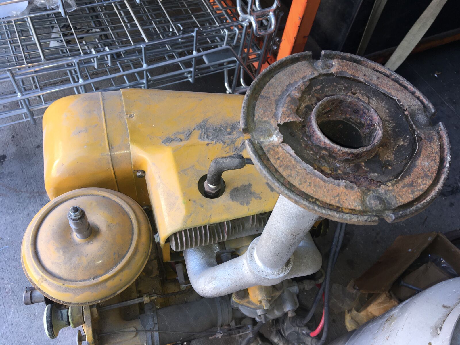 Please bring some starting fluid, a battery and some jumper cables to check it out thoroughly. It has been sitting for at least 15 years. It has clean oil (but old oil) in it. No gas tank is included.