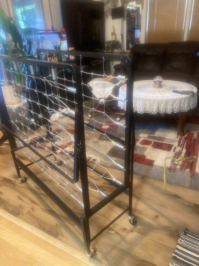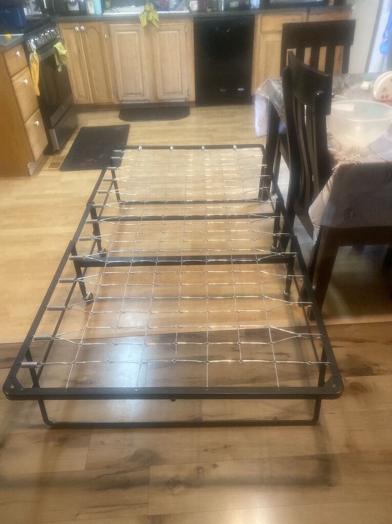 $45.00. Cash Great condition. Bed. Frame metal. Folding . Long 74” Tall. 14.5”. Wide. 38”. Twin
