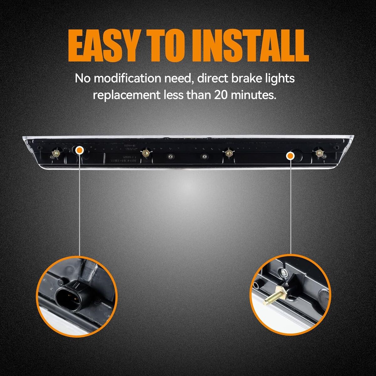 Direct Fitments3RD Third Brake Light compatible with 2015 2016 2017 2018 2019 2020 15 16 17 18 19 20 Chevy Tahoe, 2015-2020 Chevy Suburban, 2016-2019 Chevy Suburban 3500HD. IP65 WaterproofWith sturdy lens and ABS housing, the well-sealed cover can enhance water, dust and snow resistance level, which can greatly prolong the lifetime. (Note: This light does not have a gasket.) Easy InstallationPlug and play. The bolts are NOT the exact same size as the OEM one, so some modification with the wire and plug is necessary. In order not to let the cover cracked, hand screwer and professional installation are highly recommended. FeaturesWith low power consumption, the high quality LED bulbs bring a different appearance to the veichle. WarrantyWe truly offer 1 year warranty with sincere customer service. If you have any questions, please feel free to contact us and we will reply. BWSKU: SLC-101417 9-16-25 00.1