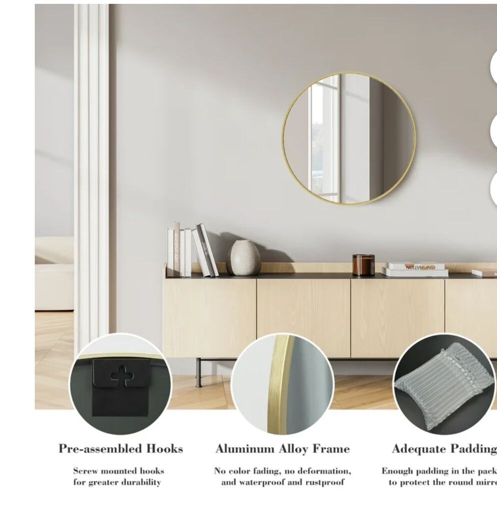 New in Box!!! Our wall-mounted round mirror features a sleek and modern design that adds a touch of elegance to any room. The round mirror is made of high-quality materials, ensuring durability and clarity. Its simple yet stylish frame complements a variety of decor styles. Perfect for bathrooms, bedrooms, or entryways, this round mirror is easy to install and will enhance the overall aesthetic of your space. Elevate your home decor with this chic and functional wall mirror.