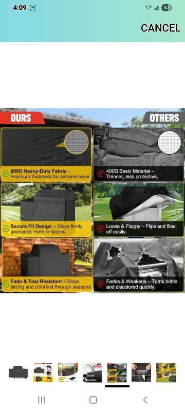 PERFECT FIT FOR Woodridge Pro & Elite GrillsDesigned specifically for Woodridge Pro Cover and Woodridge Elite Cover models (compatible with BAC776 specs), ensuring full-length coverage without loose flapping. UPGRADED 15300Pa WATERPROOF PROTECTIONSuperior to standard all-weather grill covers, our 600D polyester with PVC backing blocks heavy rain and snow, with sealed seams preventing leakage. WINDPROOF ANCHORING SYSTEMFeatures bottom straps and weighted hems to resist 60mph winds, keeping the cover securely in place during storms. UV-RESISTANT FADE GUARDHigh-density fabric with UV inhibitors prevents sun damage and color fading, outperforming standard covers in durability tests. UV-RESISTANT FADE GUARDHigh-density fabric with UV inhibitors prevents sun damage and color fading, outperforming standard covers in durability tests.