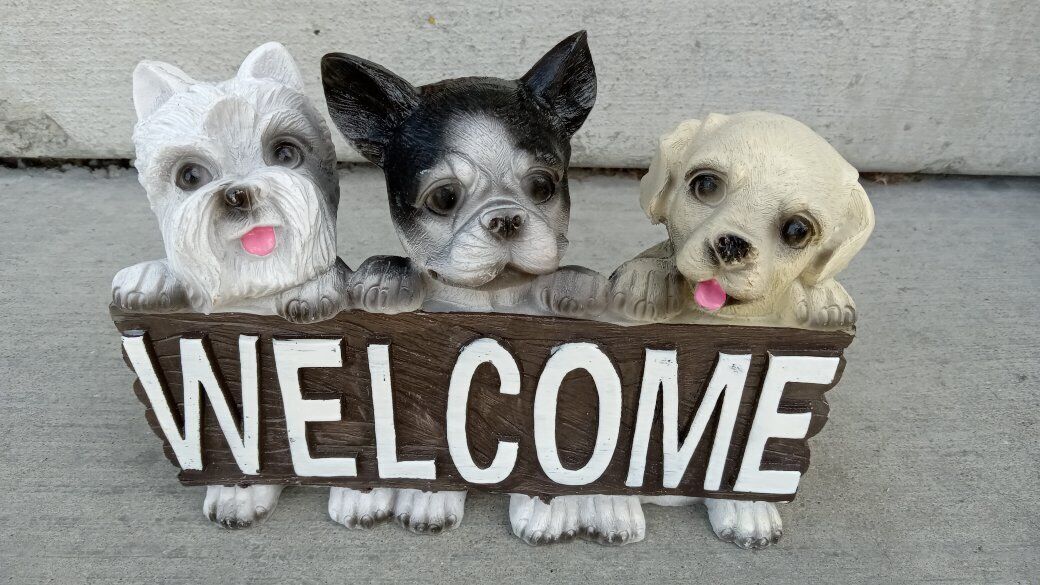 Venmo(Price reduced on 12/9) Up for sale are 2 Welcome Sign Statues featuring Cute Dogs/Puppies and Birds Cardinals and a bluebird.